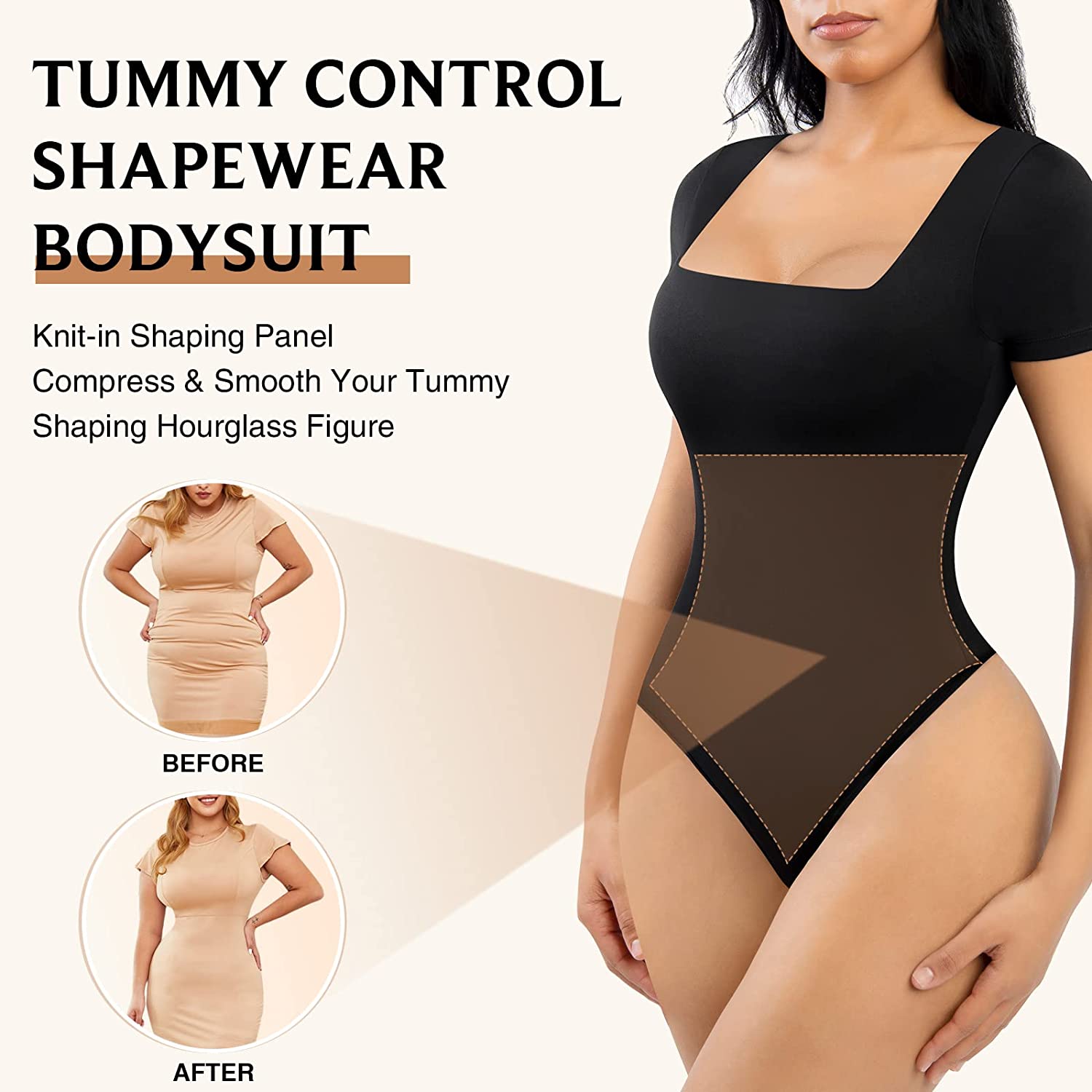 • FIRM CONTROL BODYSUIT: This bodysuit for women can tucks your belly in, wraps the waist and abdomen with high compression, tighten your tummy and back, gives you a super nice shape, helps you look great on the whole. It also can hide the fat on both sides to slim your waist, give you more beautiful hourglass figure.