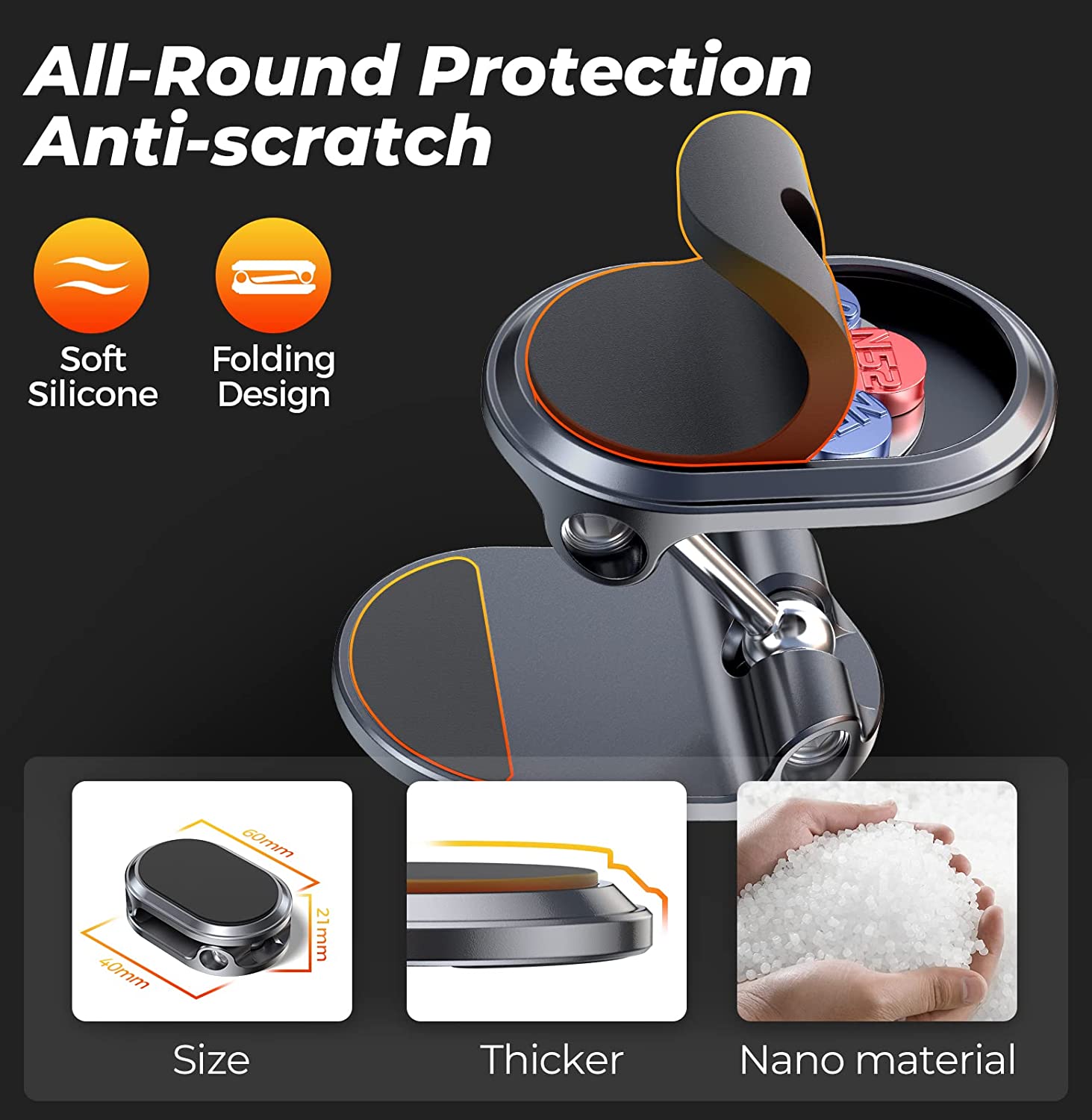Magnetic suction and adsorption: 60 times N52 magnetic suction to hold your phone firmly (please be sure to use it together with the metal plate).3M high and low temperature resistant stickers, even at 40 degrees Celsius, will not fall off.