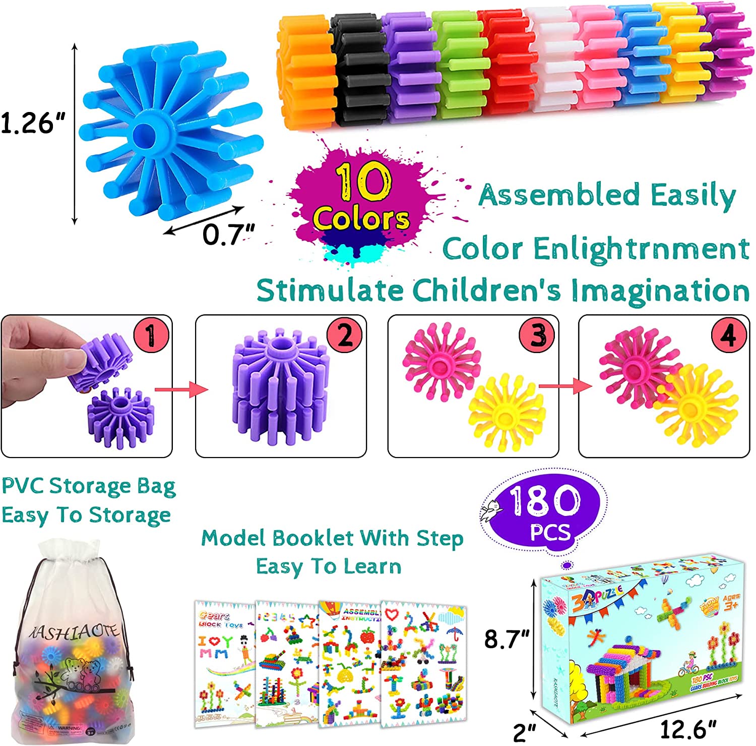 ★ Includes: 180 Pcs Colorful Gear Interlocking Building Set - Includes 10 different colors (Pink, purple, blue, white, green, yellow and more).