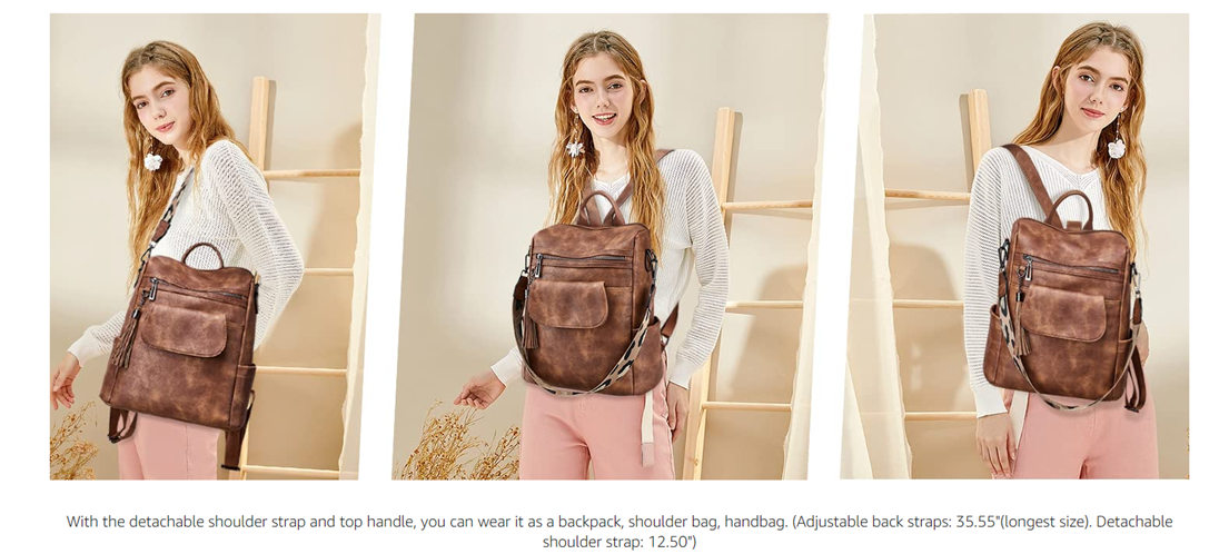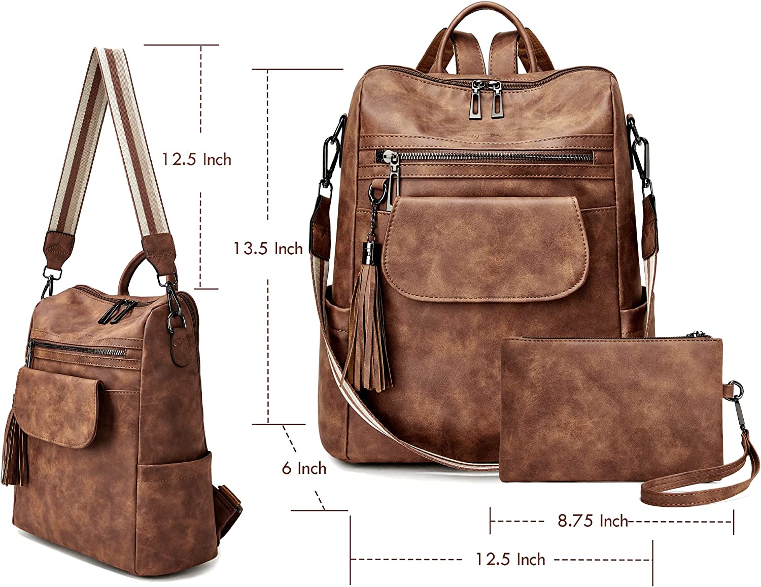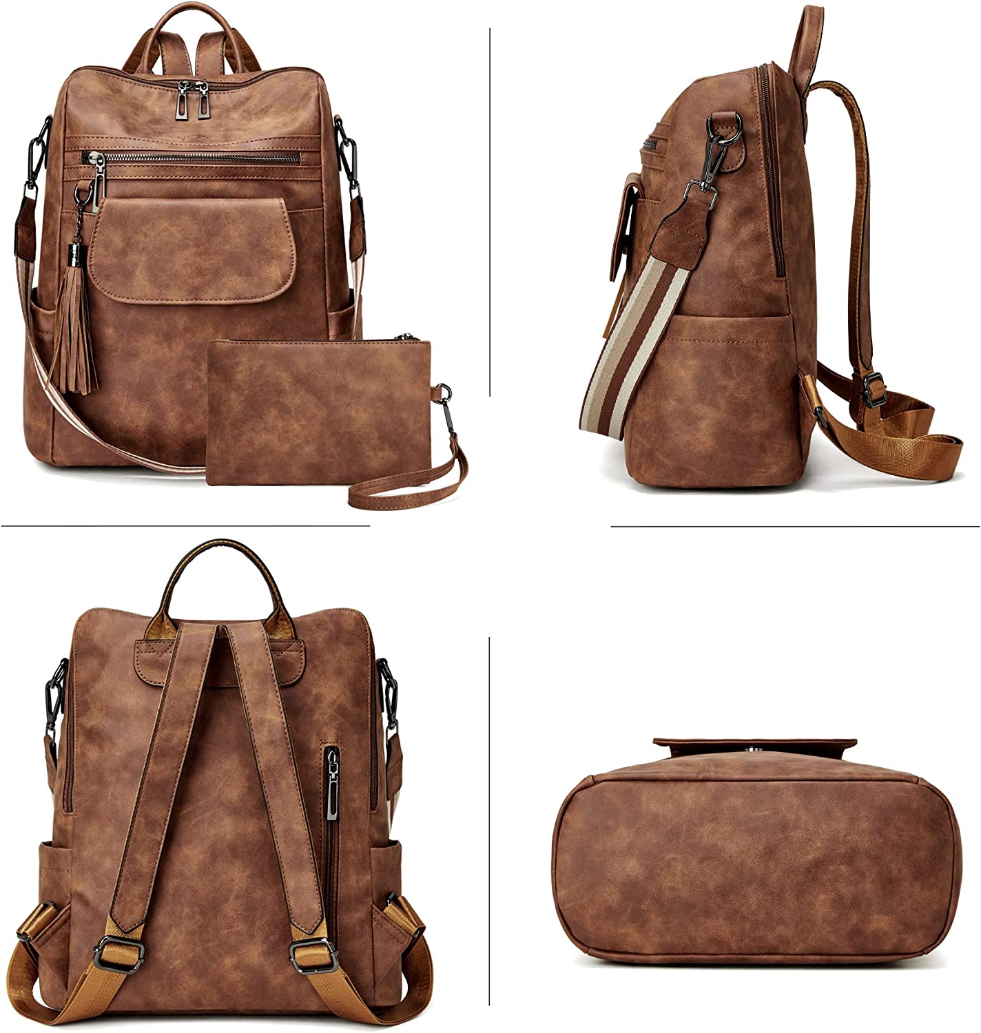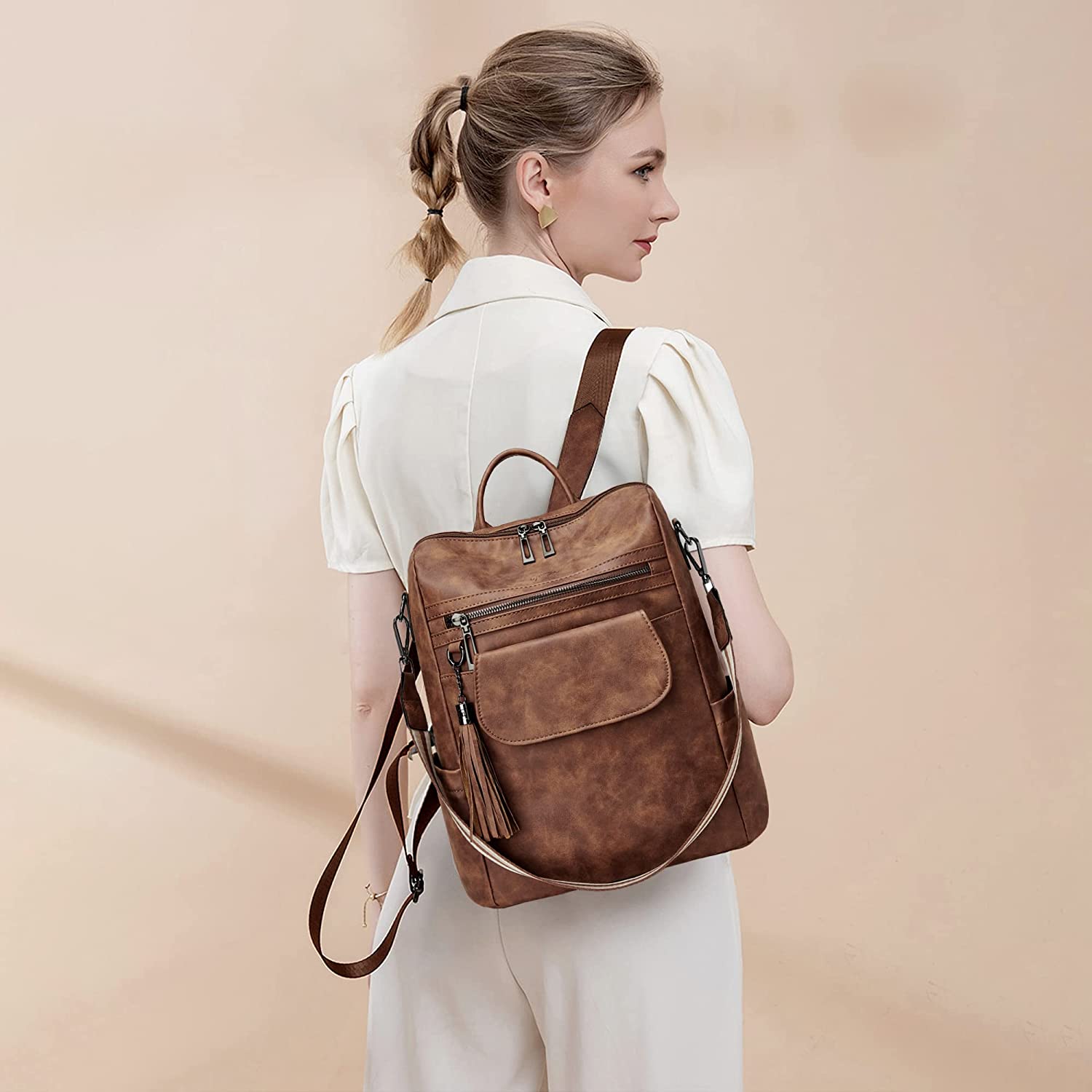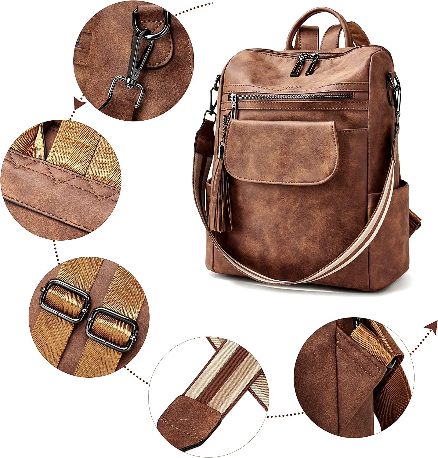 • 【HIGH-QUALITY MATERIAL】This backpack purse for women is made of high-quality water-resistant, anti-scratch and tear-resistant soft leather, metal accessories, canvas shoulder strap and fabric lining, all these details are fashionable and durable. and there is a cute tassel next to the front pocket.