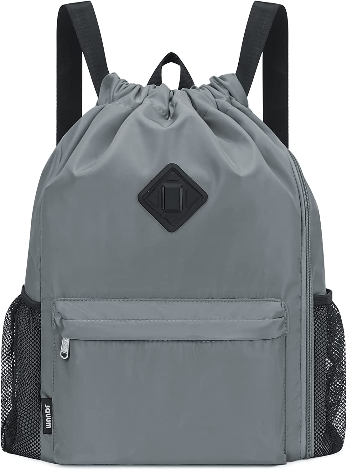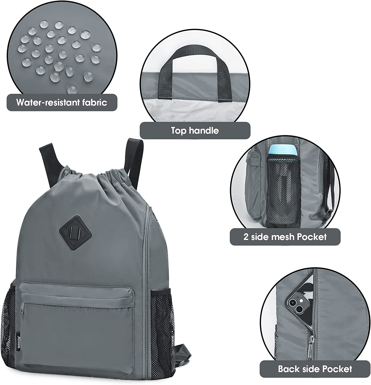 Large Capacity: WANDF drawstring gym bag measures 18.2in x 18in , which enough to hold your most sport gears or daily essentials. It also has 1 interior wall zip pocket and 2 interior wall pockets inside the main compartment to perfect classification for your items.