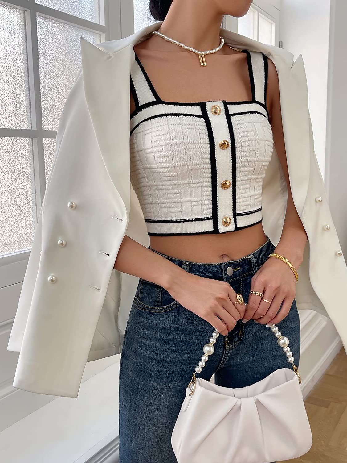 SweatyRocks Women's Sleeveless Ribbed Knit Spaghetti Strap Crop Cami Tank Top