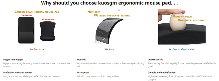 • ONE-PIECE MOLDING ?It adopts 100% memory foam one-piece molding design scheme, with wrist support as the center, which greatly increases the bearing capacity while maintaining high-speed rebound and stability without collapsing, making your wrist more comfortable.