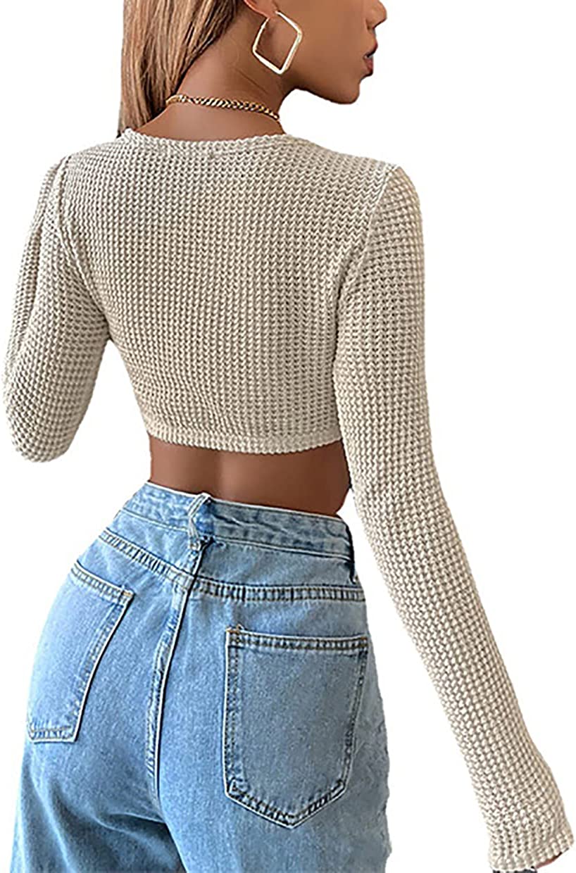 • Features: The knitted crop top is sexy and trends clothes. Unique Knitted designs, Fashion, Long Sleeve, Square Neck, Slim Fit, Asymmetric Hem, Solid Colors, Cropped Length; For summer and fall days’ trendy outfits.
