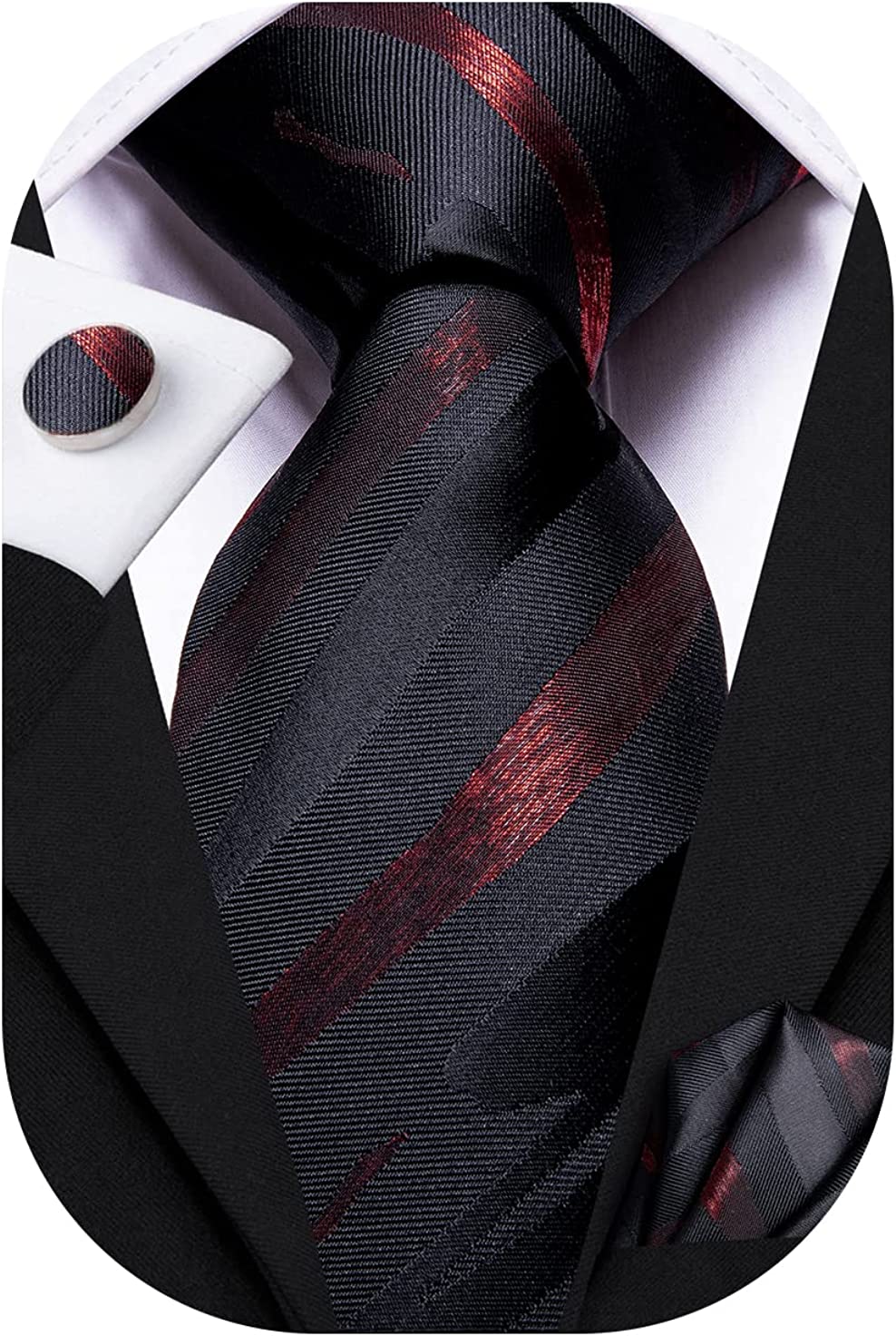 【Purchase Contains】1 Necktie+ 1 Matching Pocket Square +1 Pair of Cuff links+ Gift Box