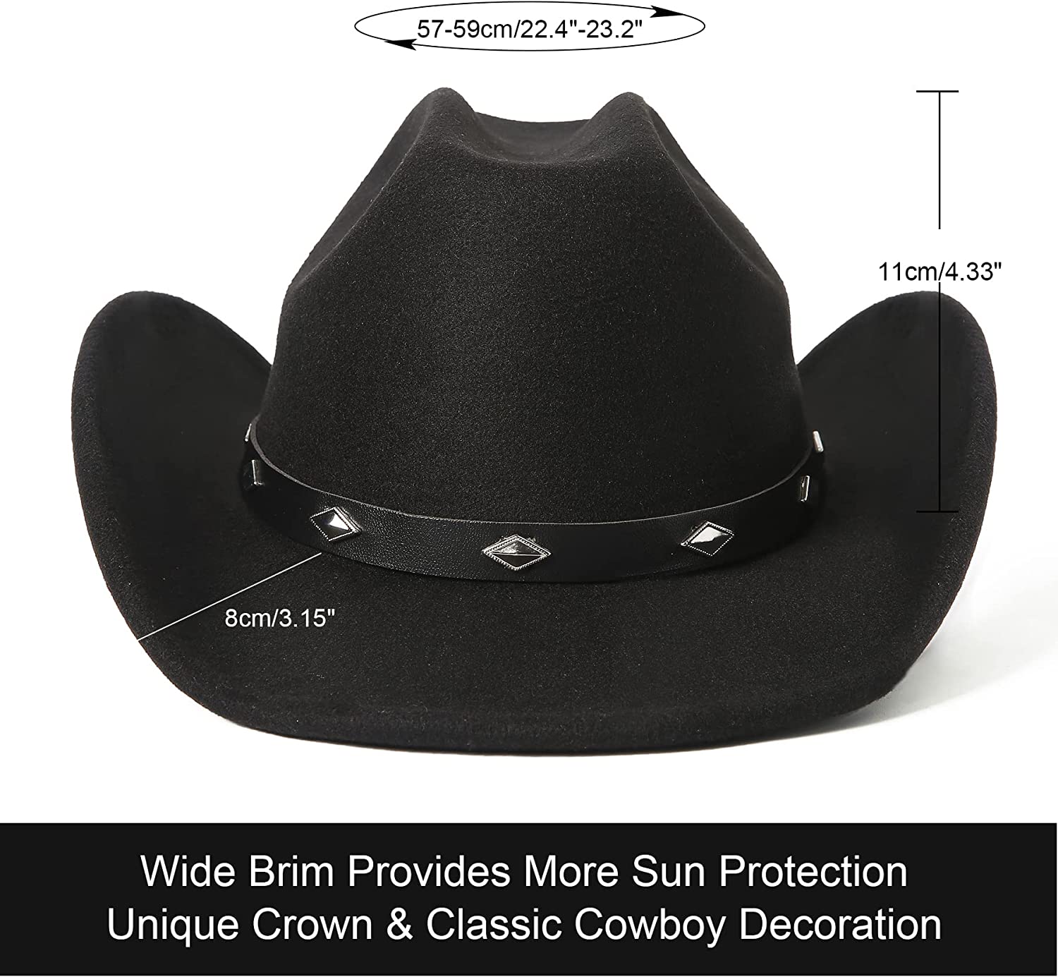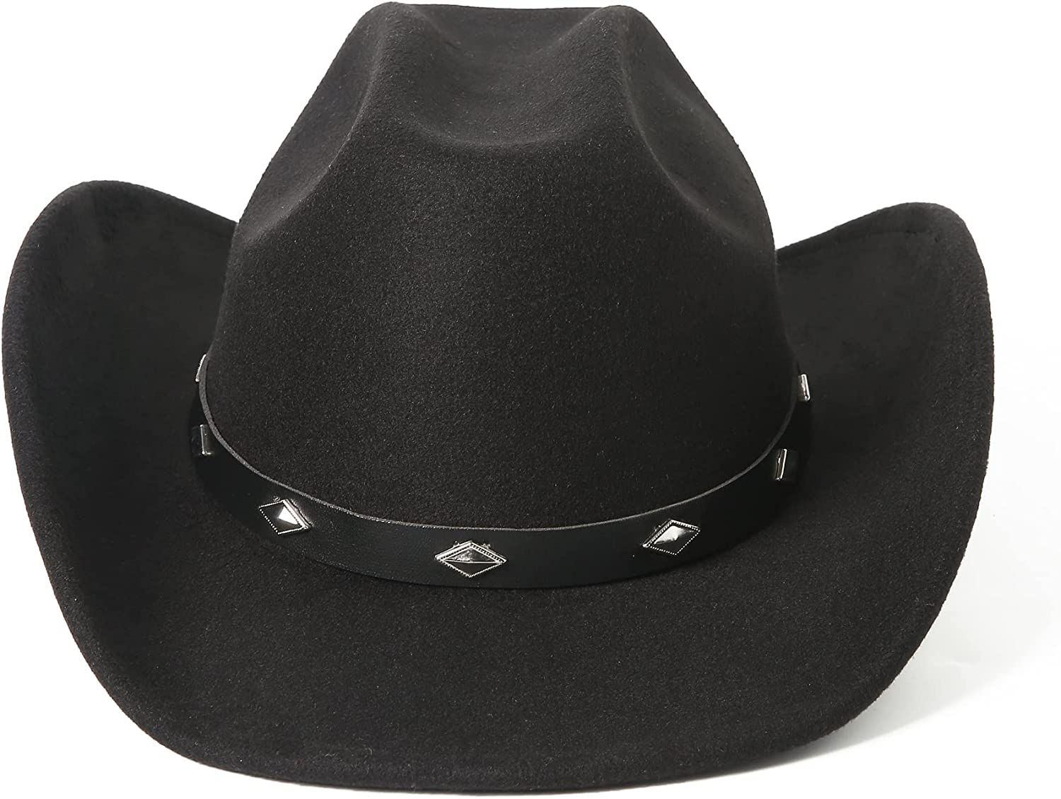 Lanzom Women Men Classic Felt Wide Brim Western Cowboy Hat Cowgirl Hat with Buckle