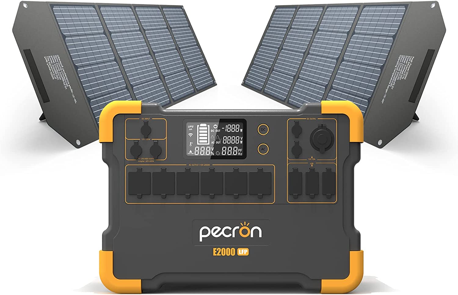 pecron Portable Power Station E2000LFP,1920Wh LiFePO4 Battery Backup Expandable to 8064Wh 6X2000W AC Outlets 1200W Max Solar Input Backup Power for Outdoors Camping Fishing Emergency