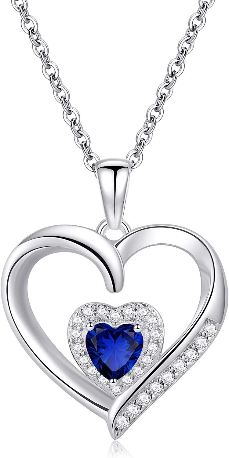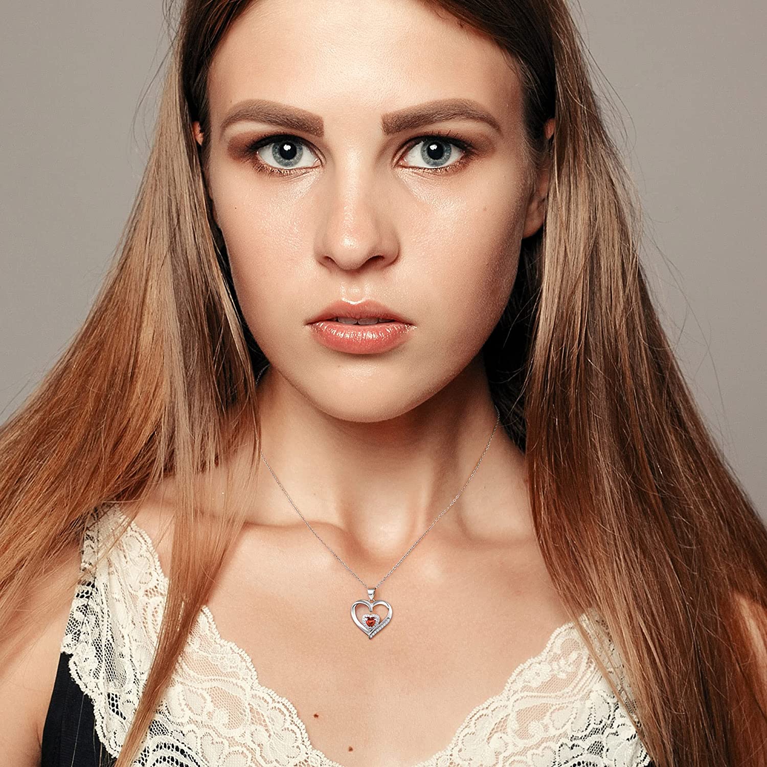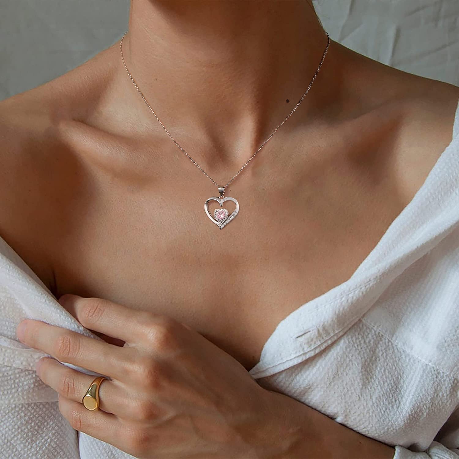 GLIVEOR Heart Birthstone Necklace for Women, S925 Sterling Silver Necklace Birthstone Necklace Heart Necklace for Women Teen Girls Birthday Jewelry Gifts for Women Teen Girls