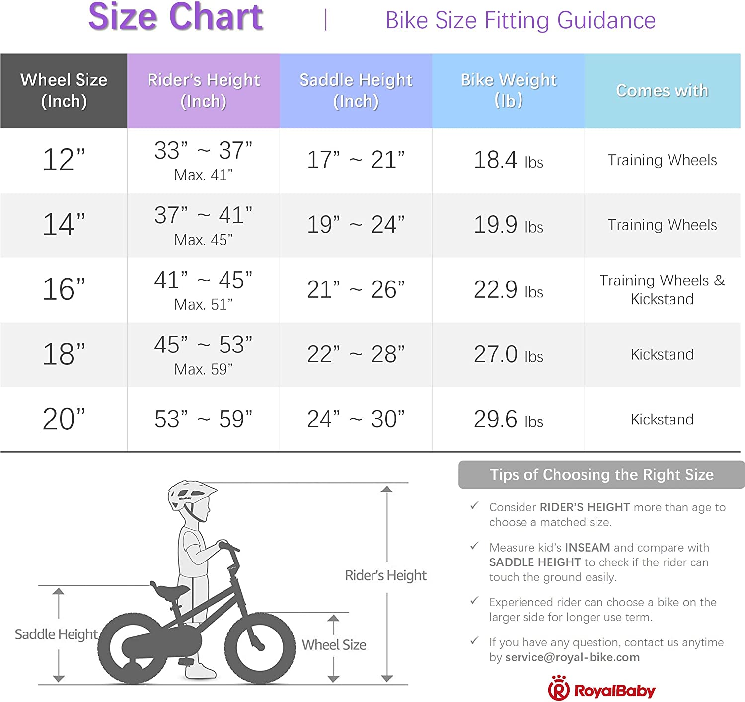 The brand of Royal Baby child's bike was born in 2009. For years, Royal Baby has been making bikes for children all over the world, create a more fantastic and colorful childhood for them. “To ensure a safer riding” has always been the highest responsibility and unremitting Pursuit for royalty. We pay much attention to the enterprise’s social responsibility. Royalbaby produces safer child’s bikes and bring more happiness to children all over the worlde on, let's Join. Royal Baby kid's bike reliable quality, safer parts, particular charms, and the attractive appearance. It is not only a continuation of the joy from childhood complex, but also a hope for a better life of our children. Let's ride together!