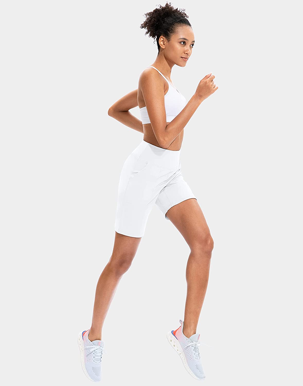 [3 Pockets] The womens bermuda shorts features one back zipper pocket on waistband and two side pockets are deep enough to hold your phone, cards or keys without falling out, free your hands during running or exercise.