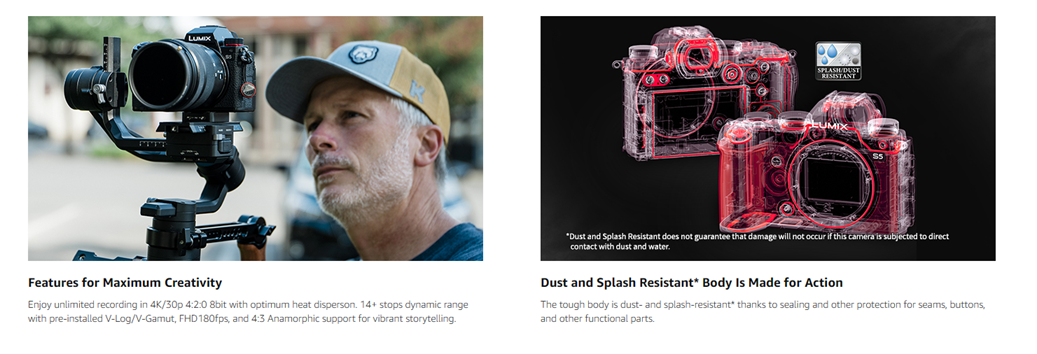 • A LIGHTWEIGHT, POWERFUL HYBRID CAMERA FOR VIBRANT STILL PHOTOGRAPHY AND CINEMATIC VIDEO: Realize your creative vision with extraordinary 4K 60p, 10-bit video, FHD 180fps Slow Motion option as well as 4:3 Anamorphic support.