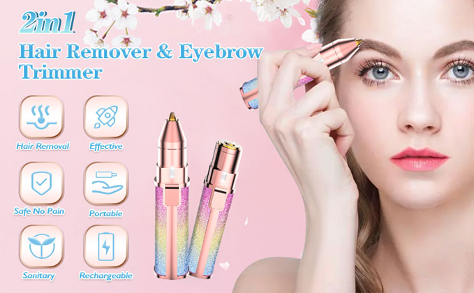 2-in-1 facial hair remover for women face is perfect for gently trimming hair from delicate areas for smoother skin. Eyebrow epilator can give you a newly comfortable eyebrow removing experience anytime and anywhere! You will be surprised after trying it! Choose this 2-in-1 facial epilator as an elegant helper to release your glamour even more deeply