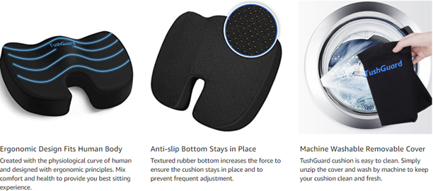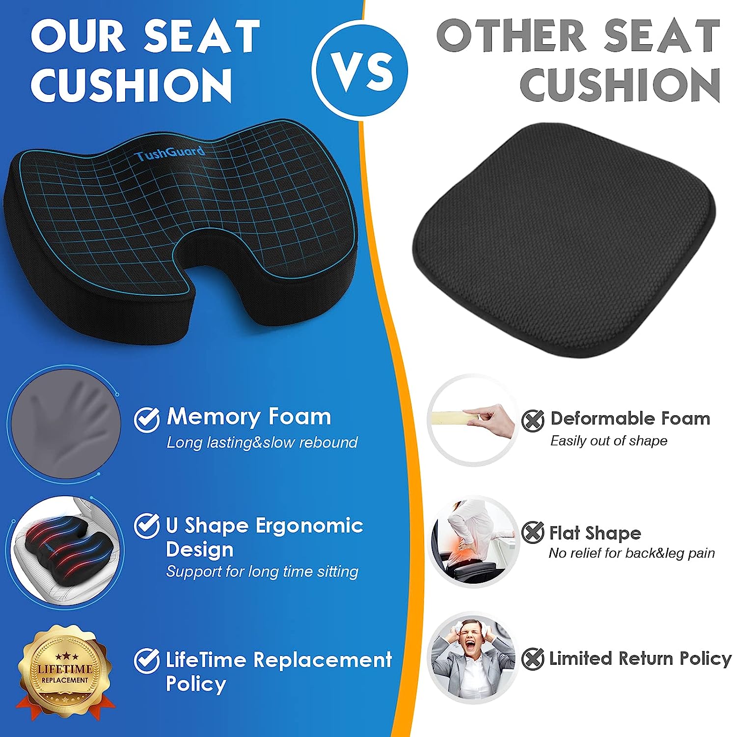- 【Ergonomic Design】 The ergonomically designed “U” shaped cushion helps to increase blood flow and support good gesture. Helps with muscle fatigue, leg tightness, and hamstring soreness. Popular with people who sit for more than 8 hours a day.