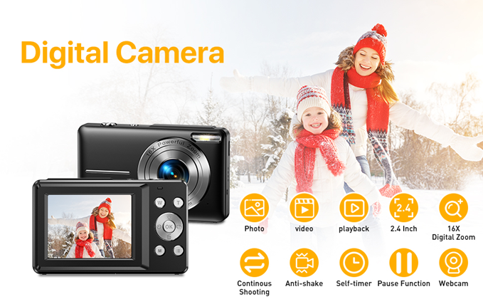 - 【PAUSE FUNCTION & EASY TO USE】: The pause function allows you to pause when recording or seeing playback videos. And the built-in fill light helps you to take quality pictures in the dark.This digital camera for teens is easy to operate and control, this kids camera is the best choice for the Christmas gift or birthday gift for kids and the elder people.