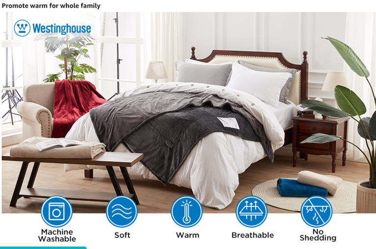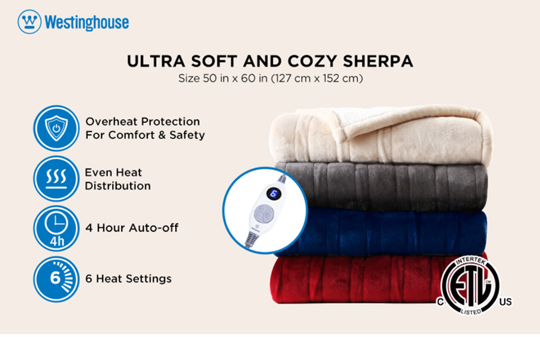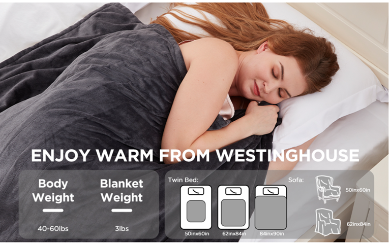 Westinghouse is built upon a tradition of dependability and innovation. Today, we strive to make everyday life a little better by offering a wide range of quality products and services you can trust.Our electric blanket brings you warmth while giving you an enjoyment.