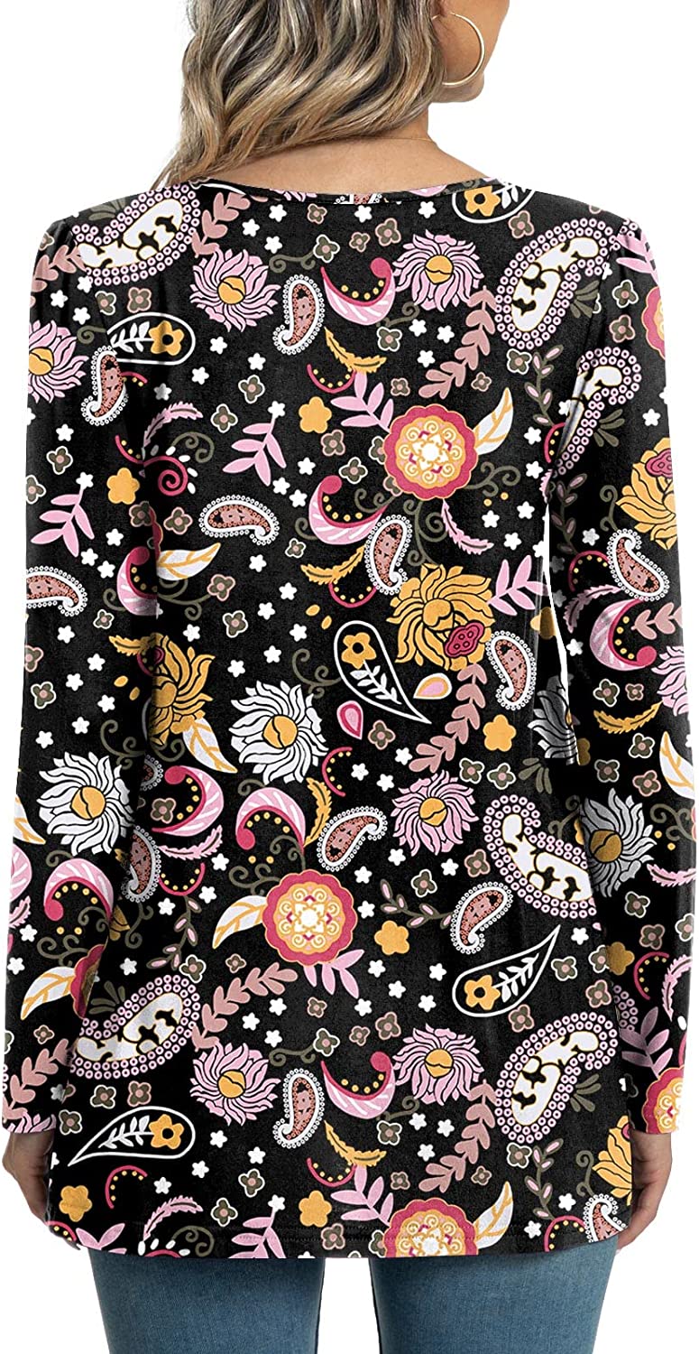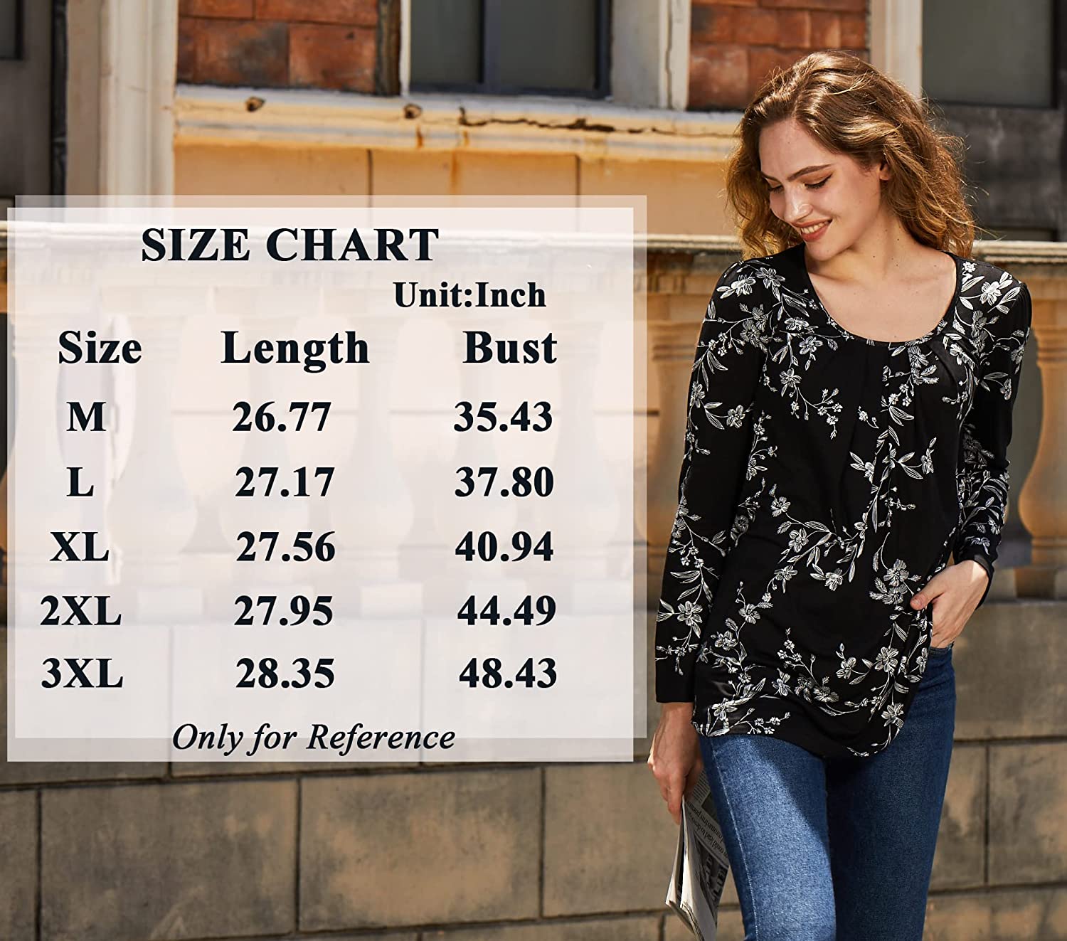 ❤【Features】 Crew neck, long sleeve, pleated on the front, easy to cover your belly and back area. Stretch, soft, loose, comfy, casual style. A variety of different solid and floral print are available for you to choose from.