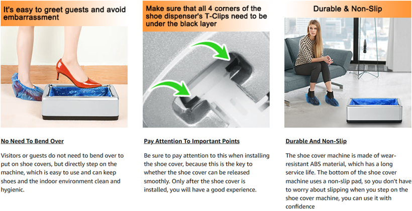 - 【Application Scenario】: Blemoacha automatic shoe covers dispenser is suitable for all types of shoes, perfect for home, office, store, supermarket, laboratory, etc. You can use it both indoors and outdoors, it can keep your shoes and floor clean of.