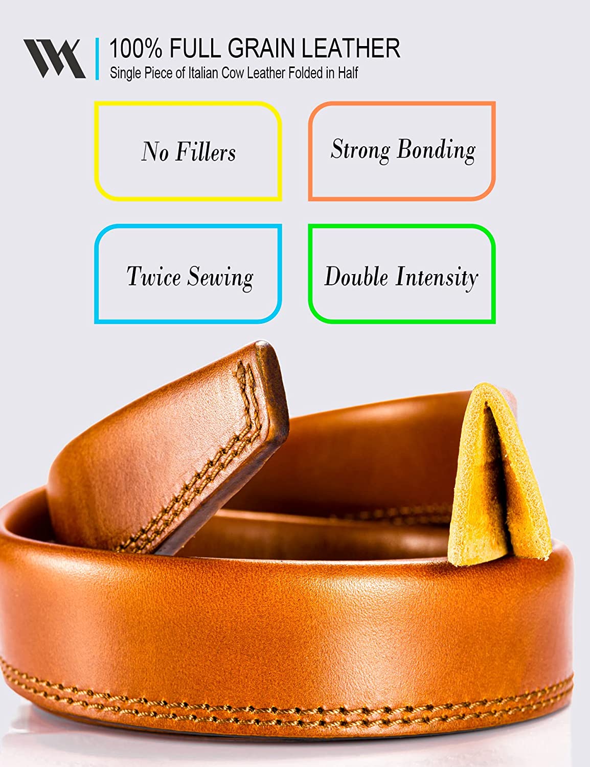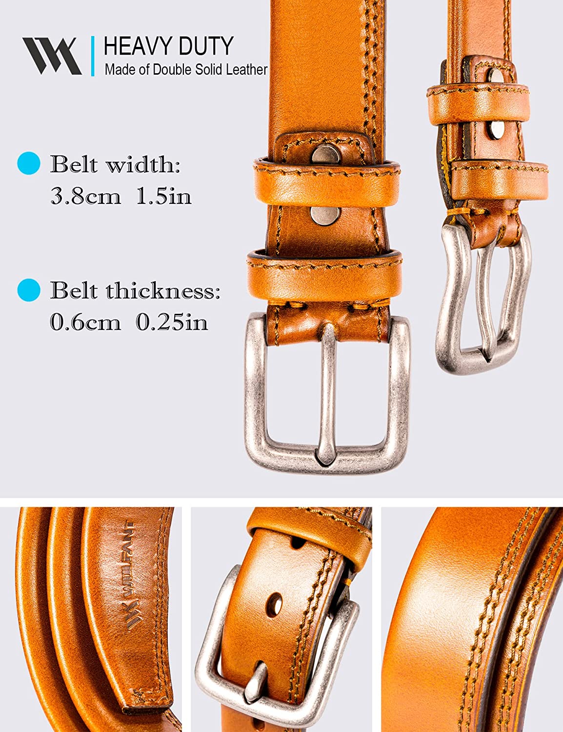 [NO Fillers]: This high-quality belts is handmade of 100% ITALIAN Full-Grain LEATHER – NO Fillers, one single piece of 1.5" top Real Solid cow leather folded in half, wont break, wont split.The special craft brings you an enhanced belt.