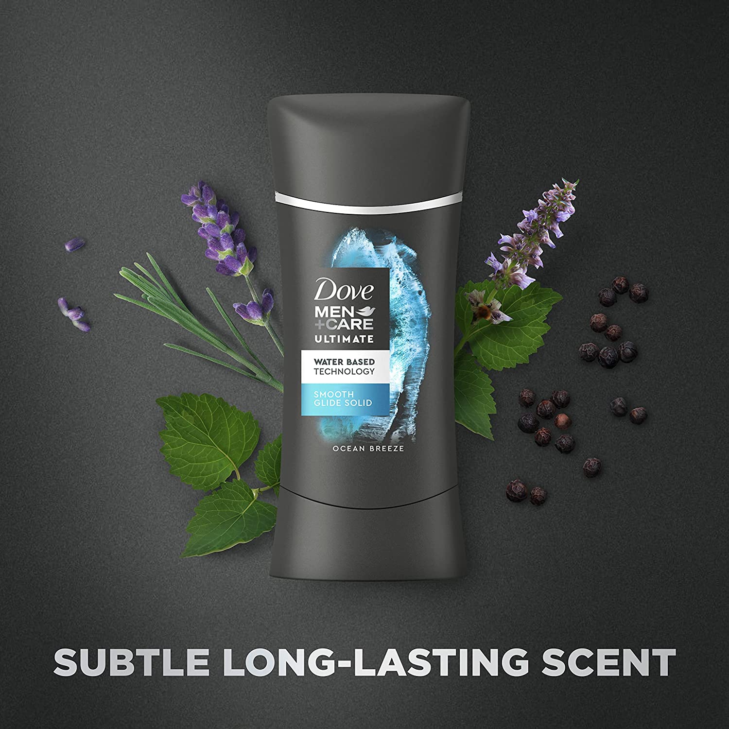 All-day protection, long-lasting fragrance, and no irritation – three things you need from an antiperspirant deodorant for the ultimate underarm care. Dove Men+Care Ocean Breeze Ultimate Smooth Glide Solid Antiperspirant is specially formulated with 30 percent water to protect your skin from irritation while giving you long-lasting freshness and protection. With the revolutionary hydrating water-based formula enriched with glycerin and omega 6, this antiperspirant stick works to lock in moisture while giving you reliable 48-hour protection against underarm sweat and odor. Irritated underarms might seem like something you can live with, but that uncomfortable feeling can really affect your mood. That’s why you should tackle armpit irritation before you even start to feel it. Dove Men+Care Ocean Breeze Ultimate Smooth Glide Solid Antiperspirant with six times more humectant moisturizers*—clinically proven to keep skin moisturized—gives you everything you need for healthy-feeling and comfortable underarms. With notes of black pepper, patchouli and lavender, it delivers a revitalizing long lasting scent. How To Use: Swipe the deodorant evenly on each underarm after your morning shower. Experience how it glides smoothly onto your underarms without dragging your skin. Try the other fragranced variants of the Ultimate Smooth Glide range: Juniper Woods and Coastal Cedar antiperspirant deodorant sticks. Dove Men+Care has used alternative non-animal methods to test product safety for the last 30 years. Dove Men+Care does not test on animals and is certified cruelty-free by PETA. In fact, every product carries the official Cruelty-Free logo for that added peace of mind. *compared to the standard formula.