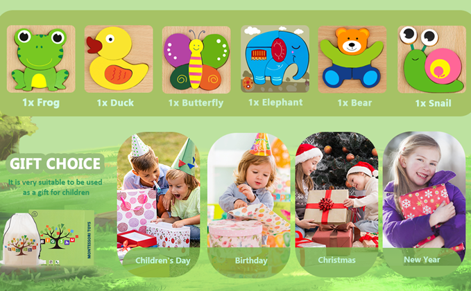 • 【BABY GIFTS】Colorful and cute animal wooden puzzles, exquisite gift boxes, and easy-to-store storage bags. Suitable for baby boy and girl birthday, easter, halloween, christmas gifts.