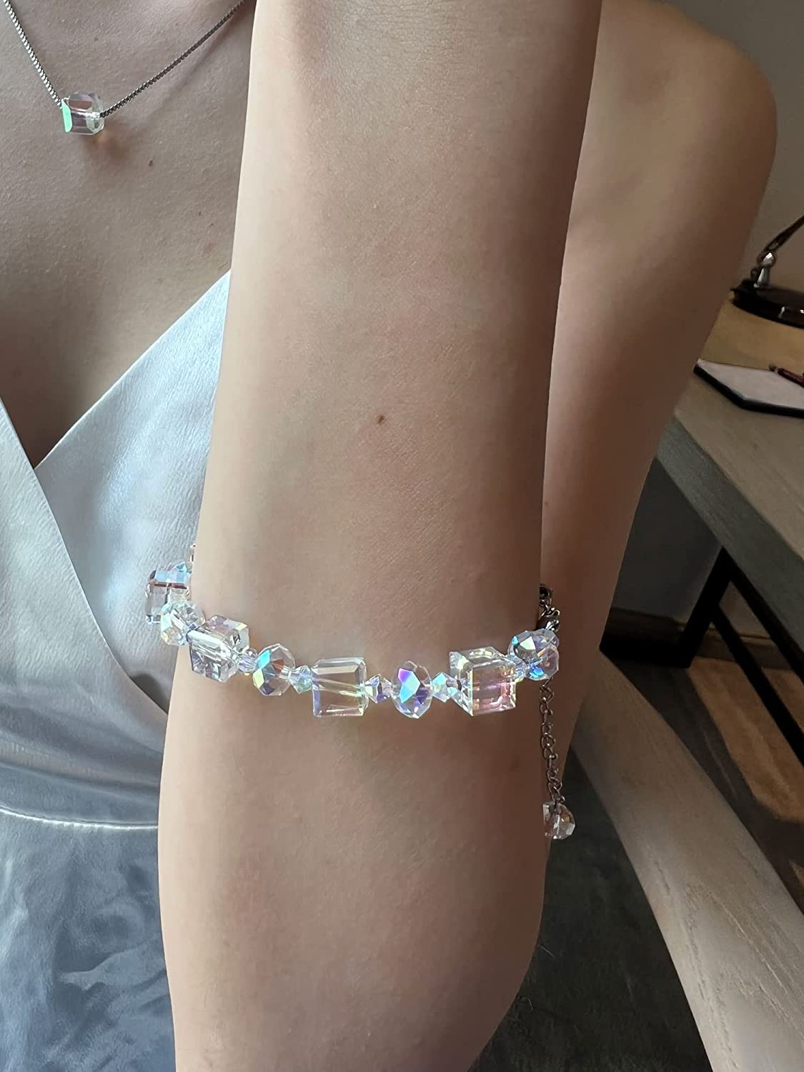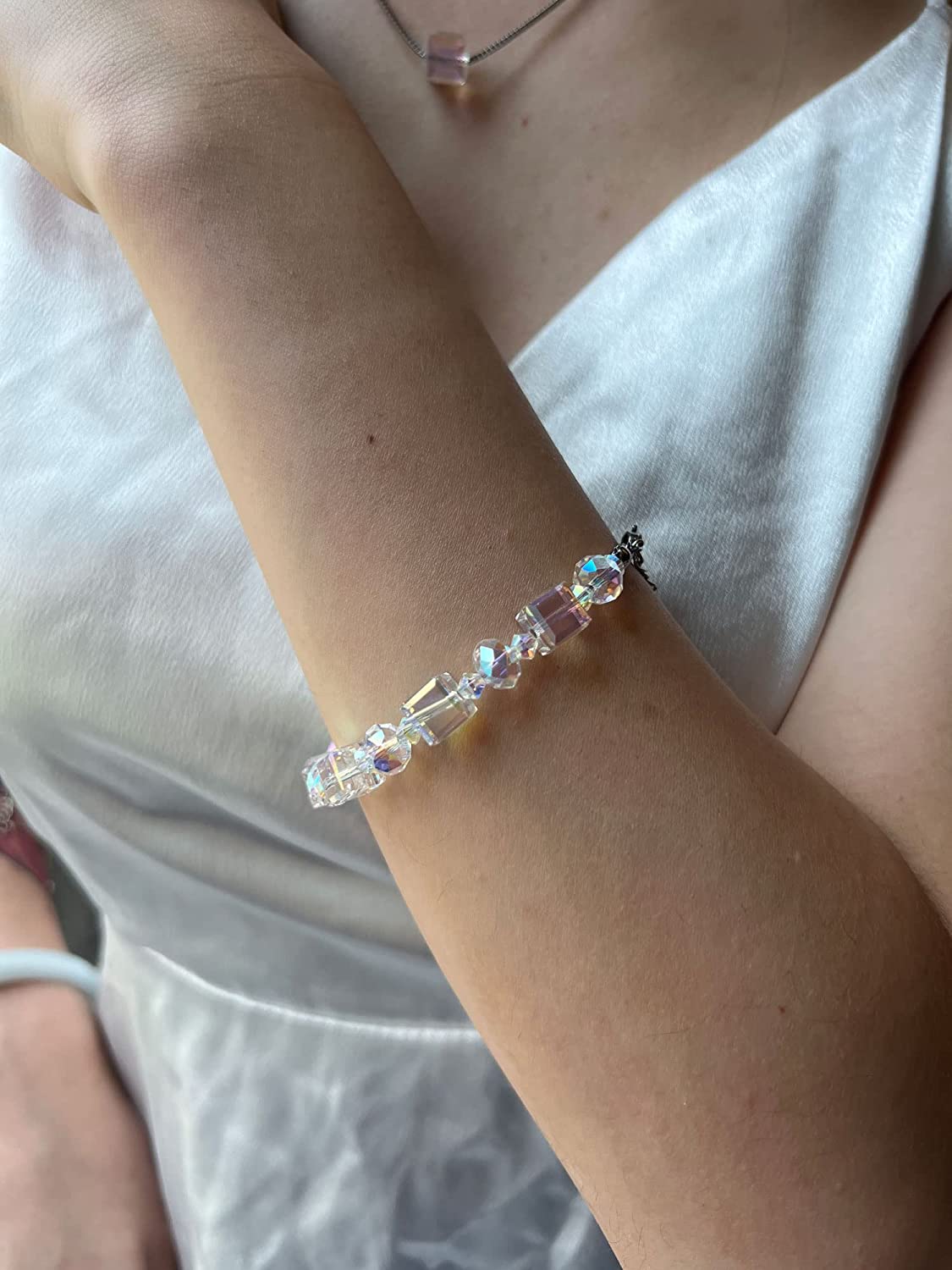 Necklace Pendent Size: 1cm*1cm/0.4inch*0.4inch, Earrings Size: 3cm*1cm/1.2inch*0.4inch, Bracelet Size :16cm/6.3inch+6cm Extend Adjustment Chain ,Chain Length: 50cm+5cm, Adjustable, Weight: 22g/Set, Not Heavy.