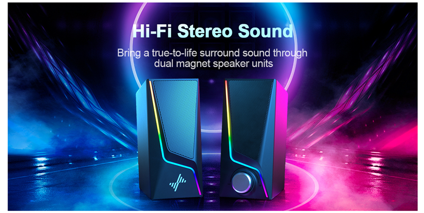 - 【Hi-Fi Stereo Sound Quality】Enjoy crisp, distortion-free Hi-Fi sound with 2 full-range dual-magnet speaker units of Nylavee computer speakers, creating remarkable, precision quality sound.