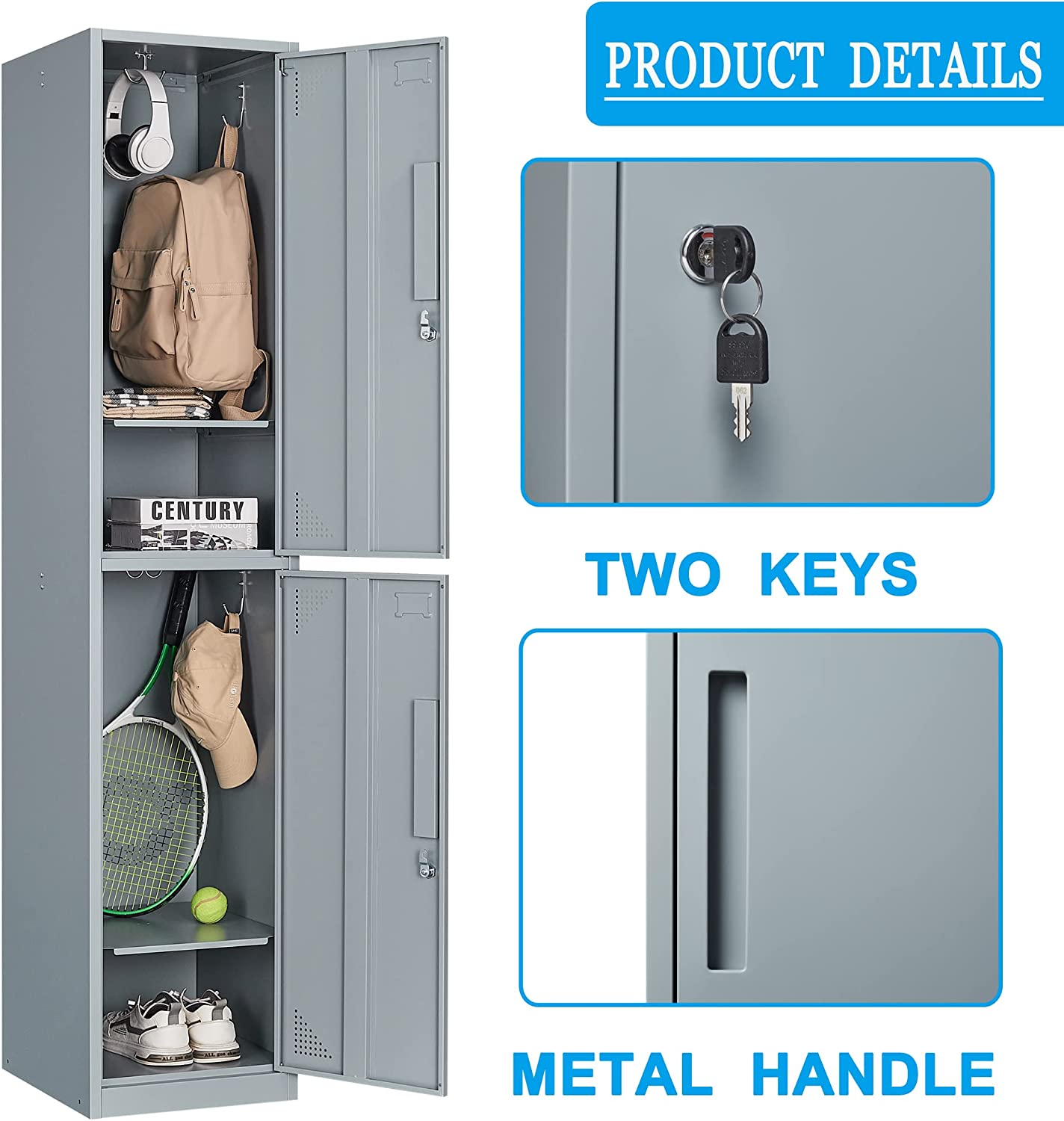 【Big capacity】Letaya metal lockers H71" x W15" x D17",2 door with lockable and 25.3 inches hight can hang clothes, hats, bags, etc.,17in deep can provide all the space needed to secure belongings for storage.