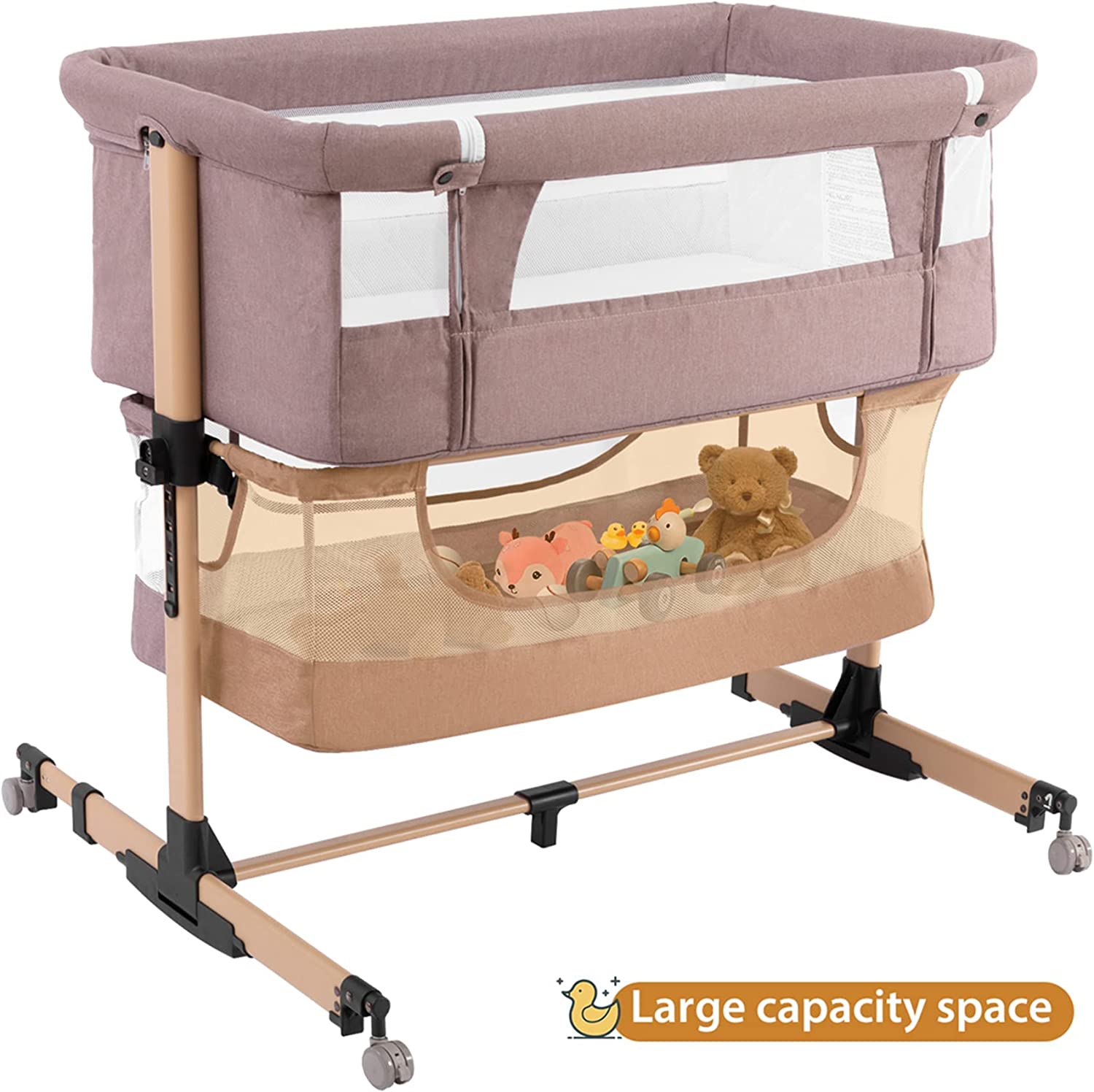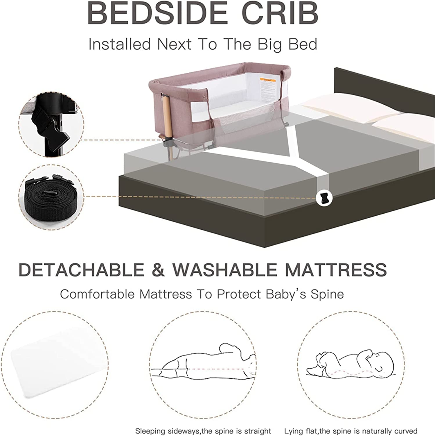 Multifunctional use:used as a baby crib or bedside sleeper attached to adult bed,Simply roll down the co-sleep side and latch it to your bed;raised unilaterally to prevent the baby from spilling milk;change to Bassinet mode,use as a bassinets