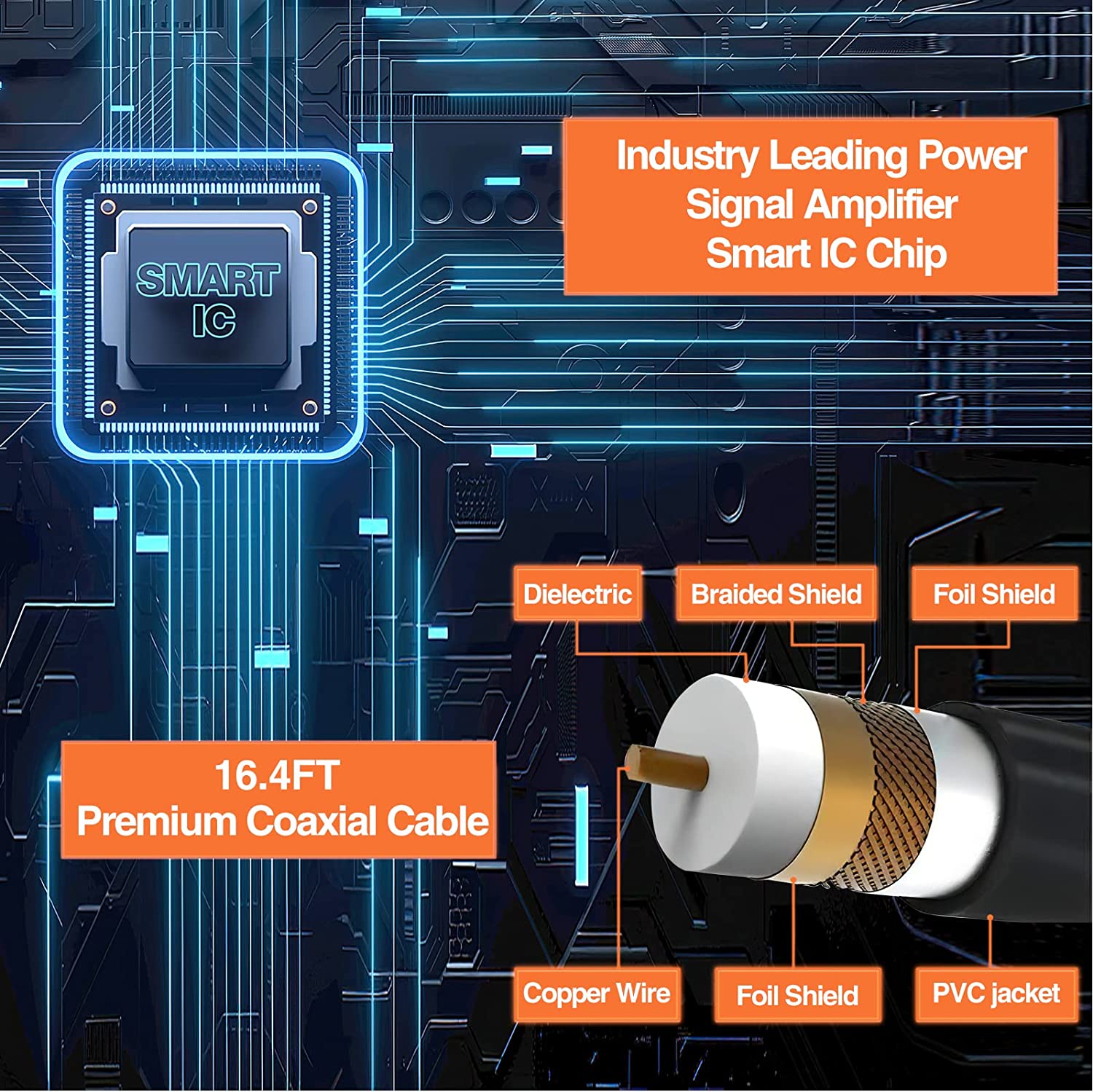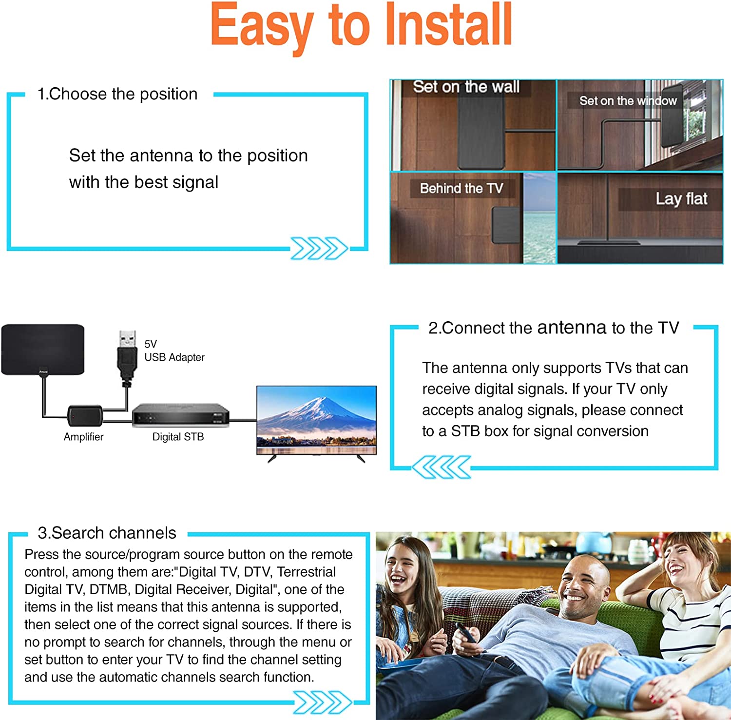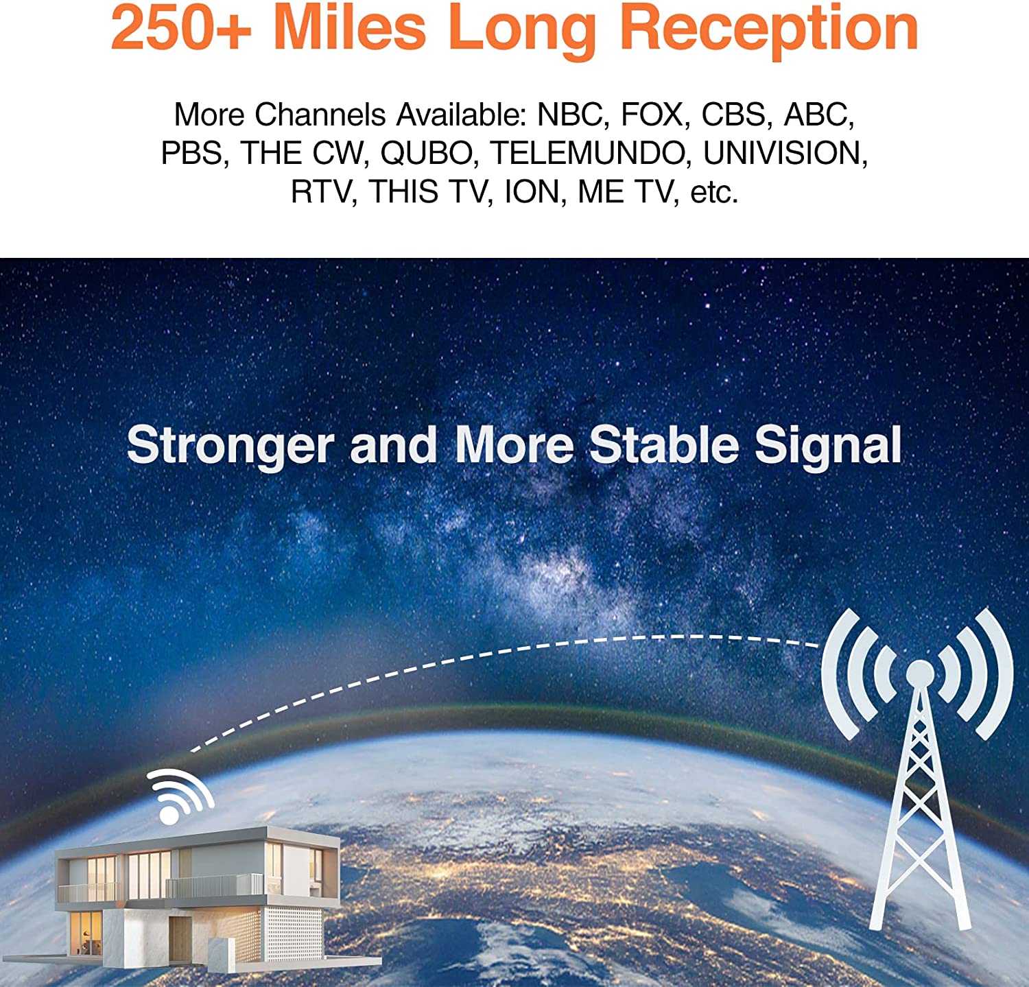 - If the signal is not satisfying or only a few channels are available, try connecting or removing the amplifier. (You can Remove the Detachable signal amplifier if your house is within 20 miles range from the tower. We do NOT Recommend to use the signal amplifier if your house is very close to the broadcast tower and the signal is already very strong.)