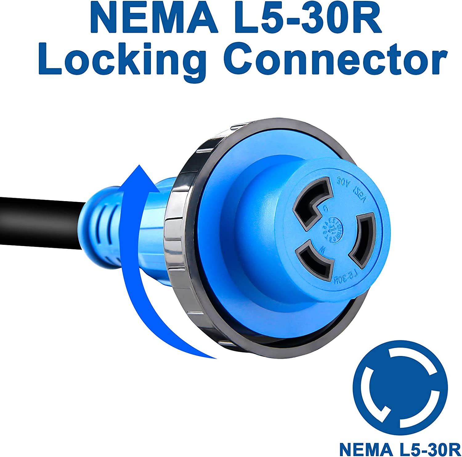 - ⚡【ELECTRICAL RATING】30A, 125V, 50 feet, STW power cord with TT-30P male plug and L5-30R female receptacle. ETL/cETL approved