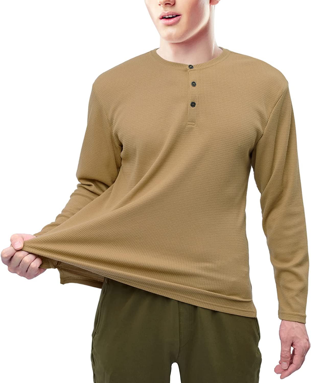 Mens Henley Long Sleeve Shirt – Casual Button Tshirt Wrinkle Free Henley Neck Pullover T Shirt Sport Tee Top