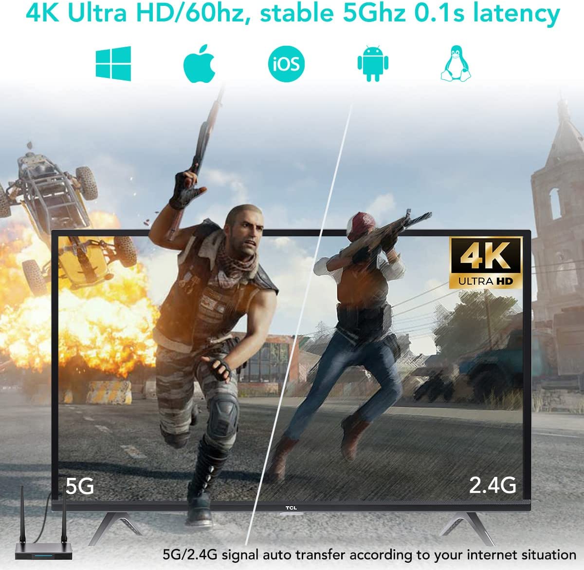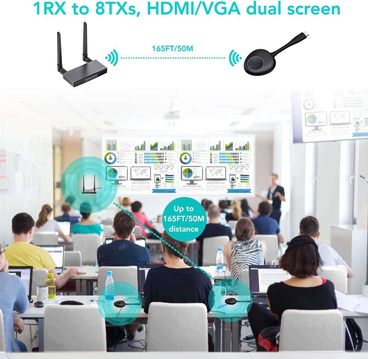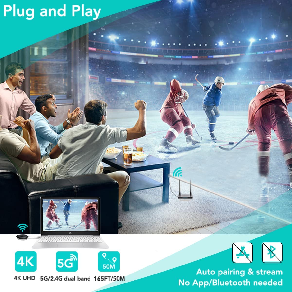 Wireless HDMI Transmitter and Receiver|4K@60Hz|165FT/50M|HDMI Dongle Wireless Adapter Extender|2.4/5GHz for DSLR Netflix Hulu Streaming Video/Audio from Laptop PC Smartphone for Conferences,Office
