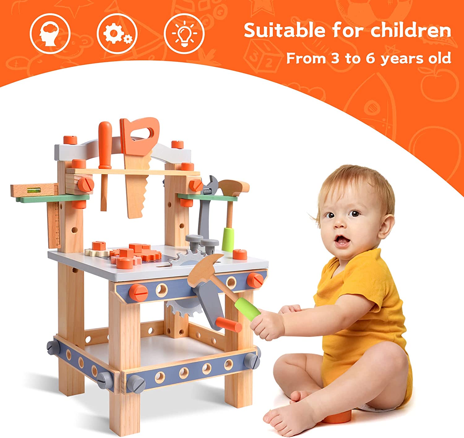 ⭐[Material and Quality]- Made of solid wood. Grinding irregular edges and corners, ensure no edges and corners and burrs, protect children's skin, let children play at ease, adults are also more at ease. kids tool bench.