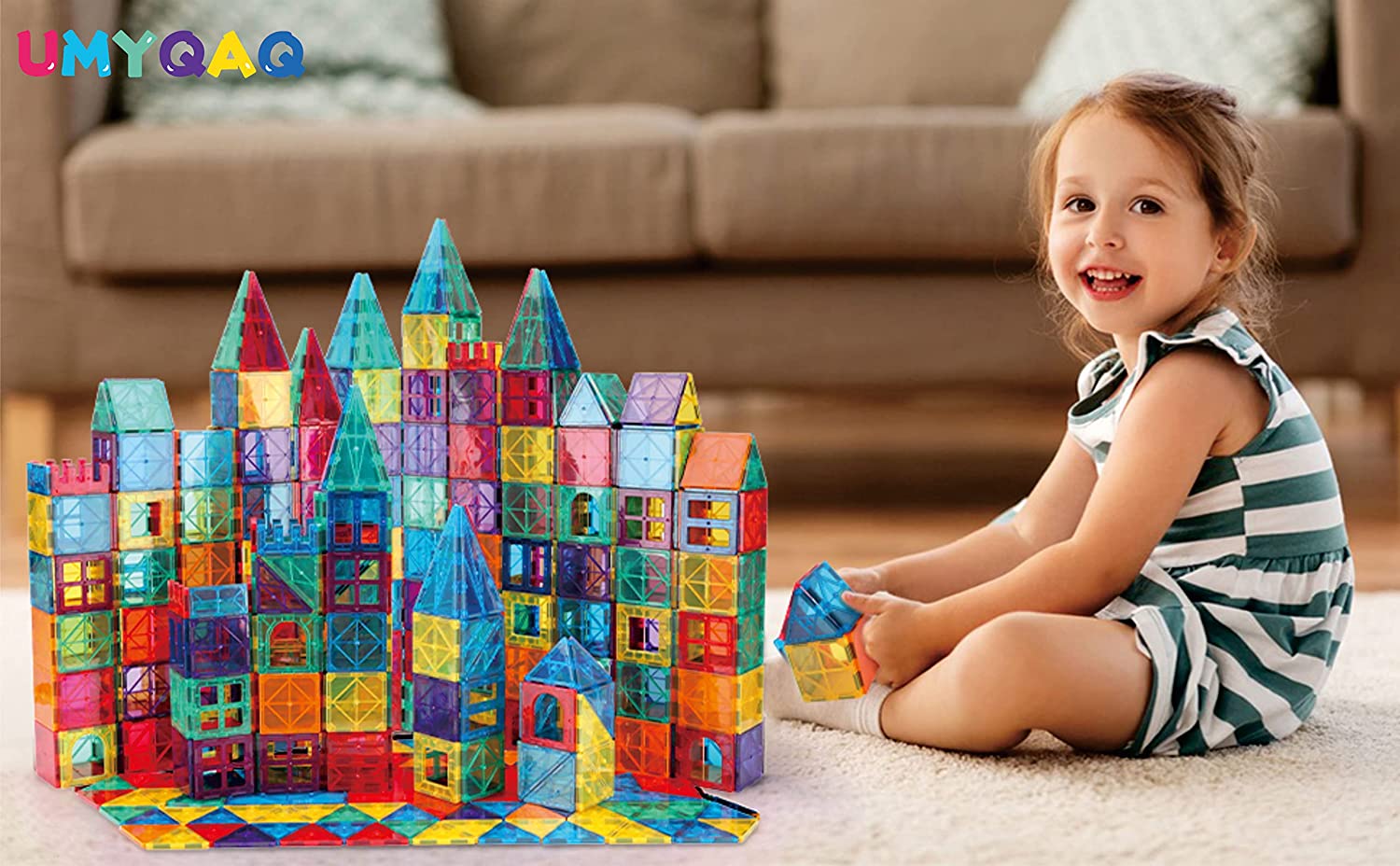 Ideal Gifts for Kids: Magnetic tile set is easy to clean and is a gift for kids' birthday, Halloween, Christmas. Bring joy and fun to your kids and let them grow up happily playing with tile magnets.