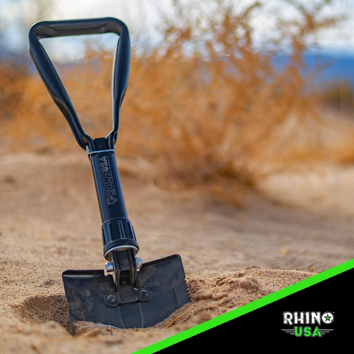 RHINO USA Folding Survival Shovel w/Pick - Heavy Duty Carbon Steel Military Style Entrenching Tool for Off Road, Camping, Gardening, Beach, Digging Dirt, Sand, Mud & Snow.