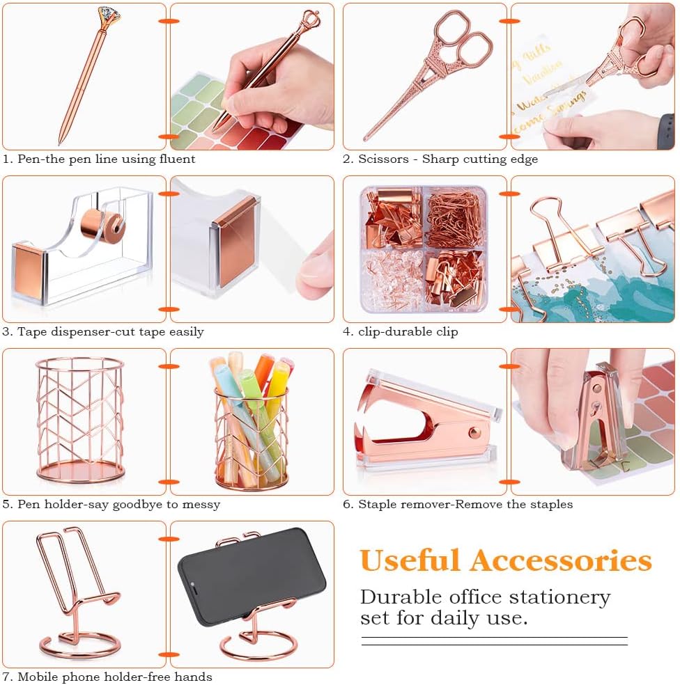 • ✅Versatile Use: Our beautiful rose gold desk accessories are perfect for any occasion, be it in school, office, study, or conference rooms. They make practical and elegant gifts for family, friends, colleagues, and students alike.