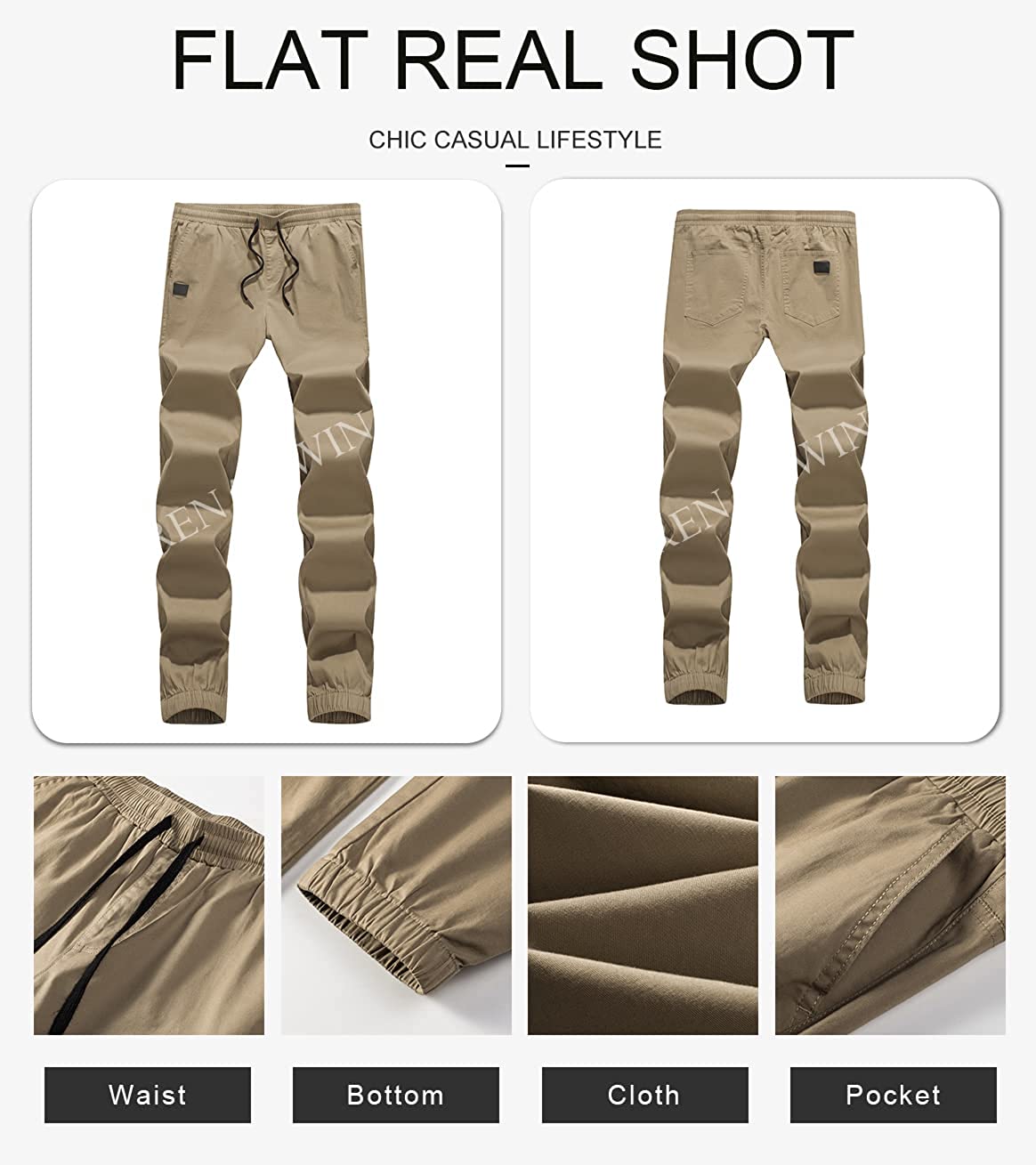TWILL ELASTIC AND COMFORTABLE BREATHABLE MATERIAL: Cargo pants for men made of 94%Cotton+6%Elastane, more breathable, softer, and the good for wicking sweat. Casual chinos pants men made of highly elastic dry fit material, which is very nice and cool to exercise and providing great flexibility and sports comfort in daily life.