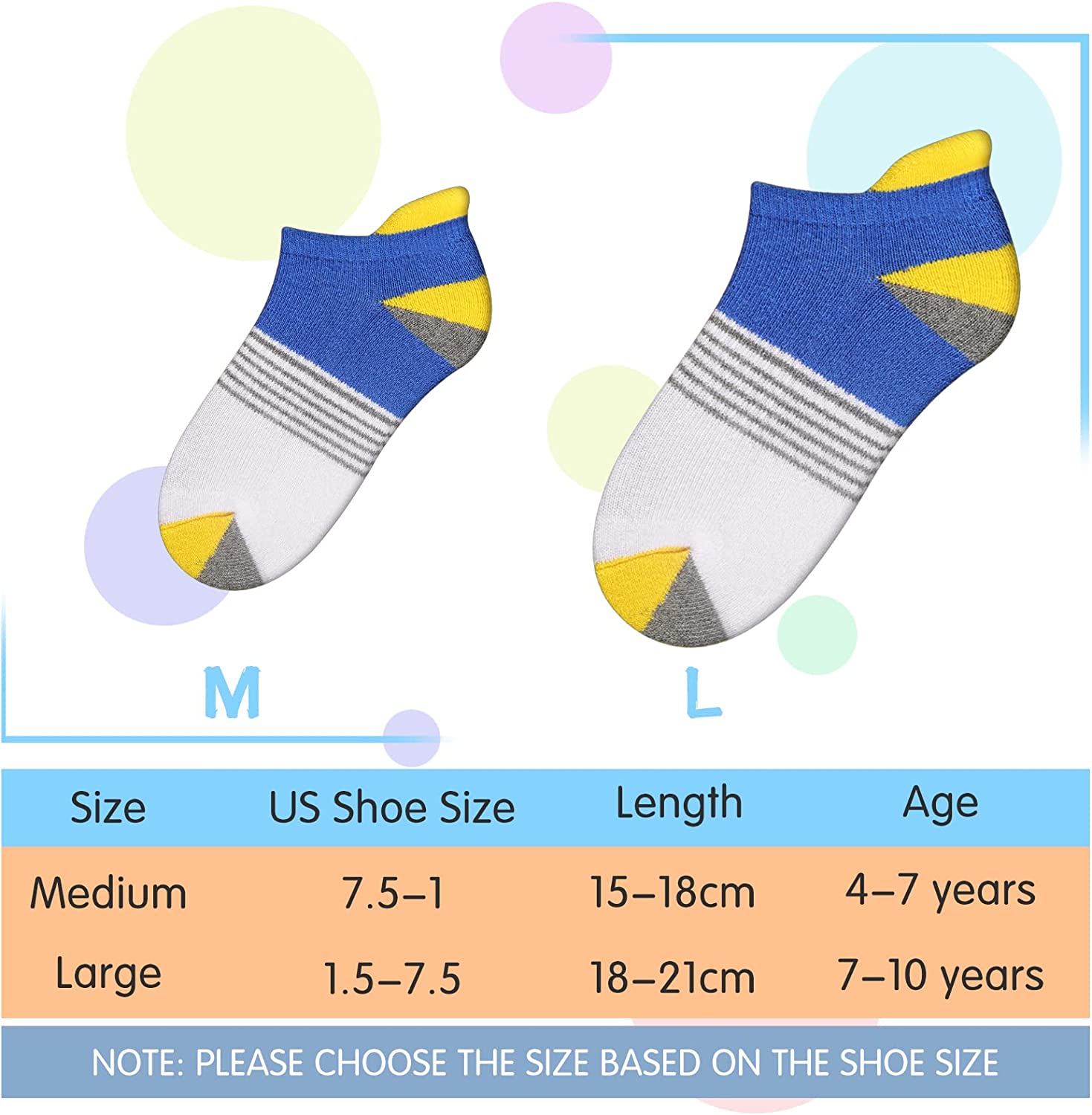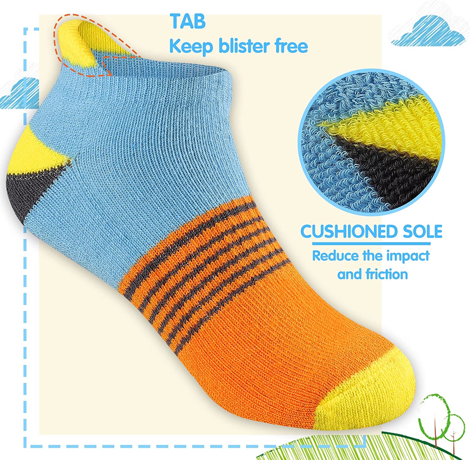 HALF CUSHIONED: Our boys ankle socks have thick padding in the bottom, which can reduce excessive friction with shoes and slow down the impact of intense exercise, giving all day comfort and protection for your active boys.