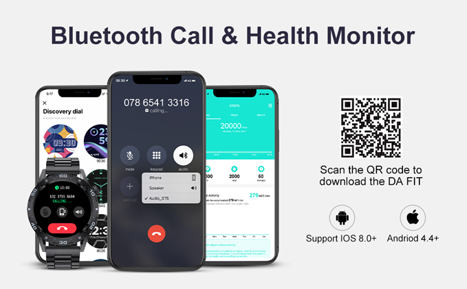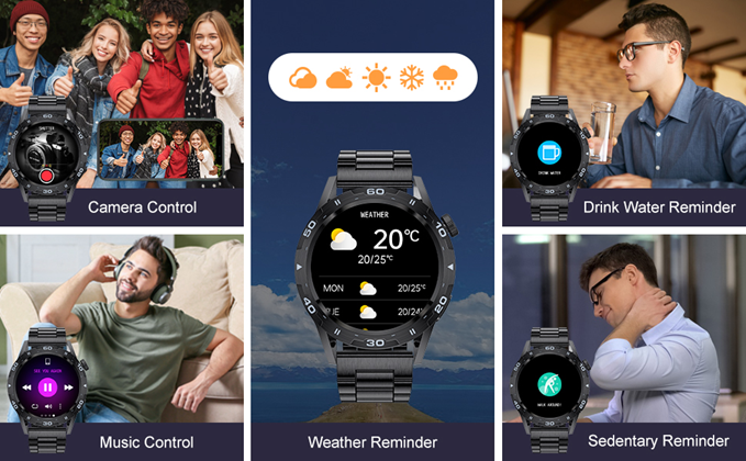 4. The water resistance of the men's smartwatch is not permanently effective and the protection may be reduced by daily wear and tear. Please do not operate the watch under water.
