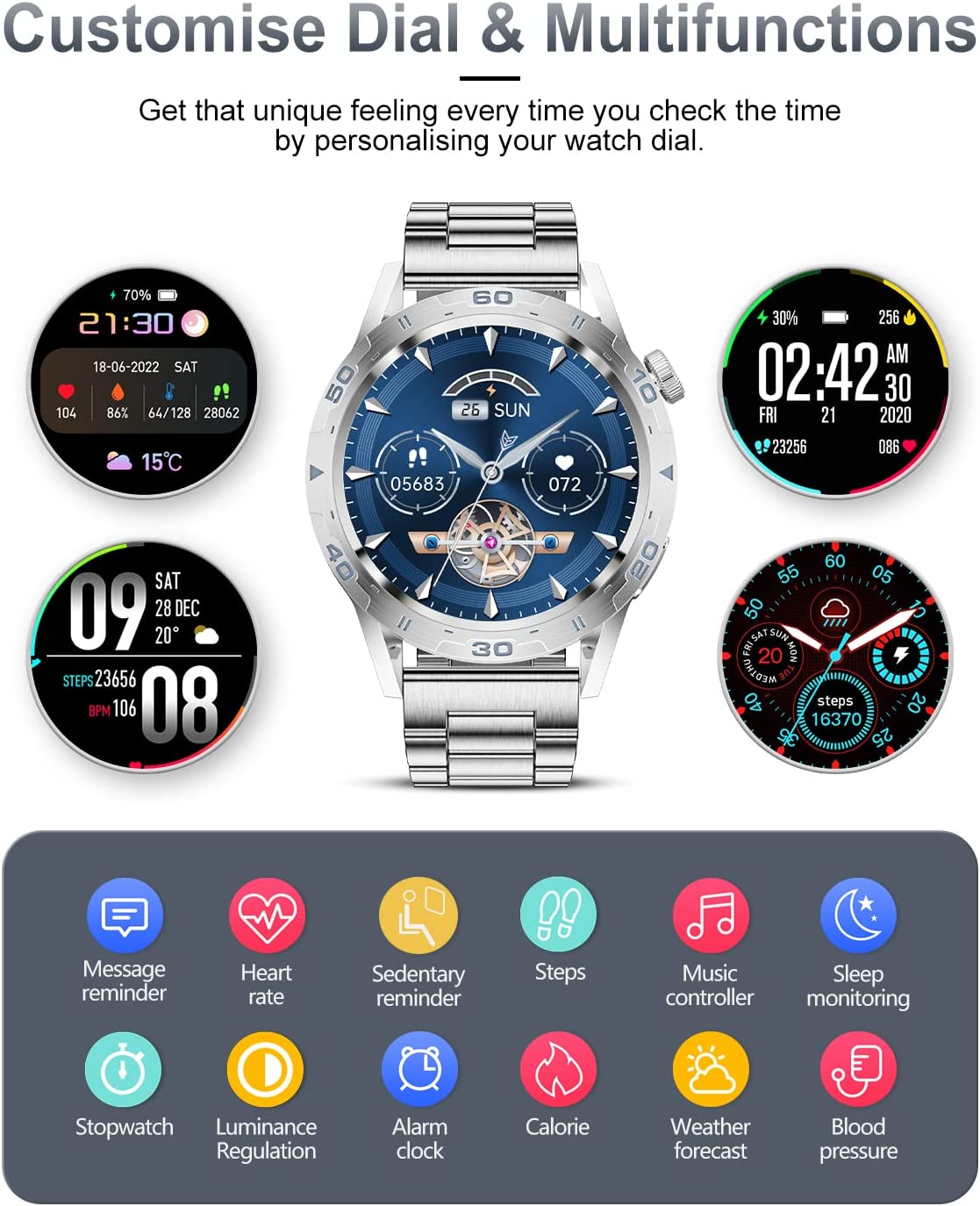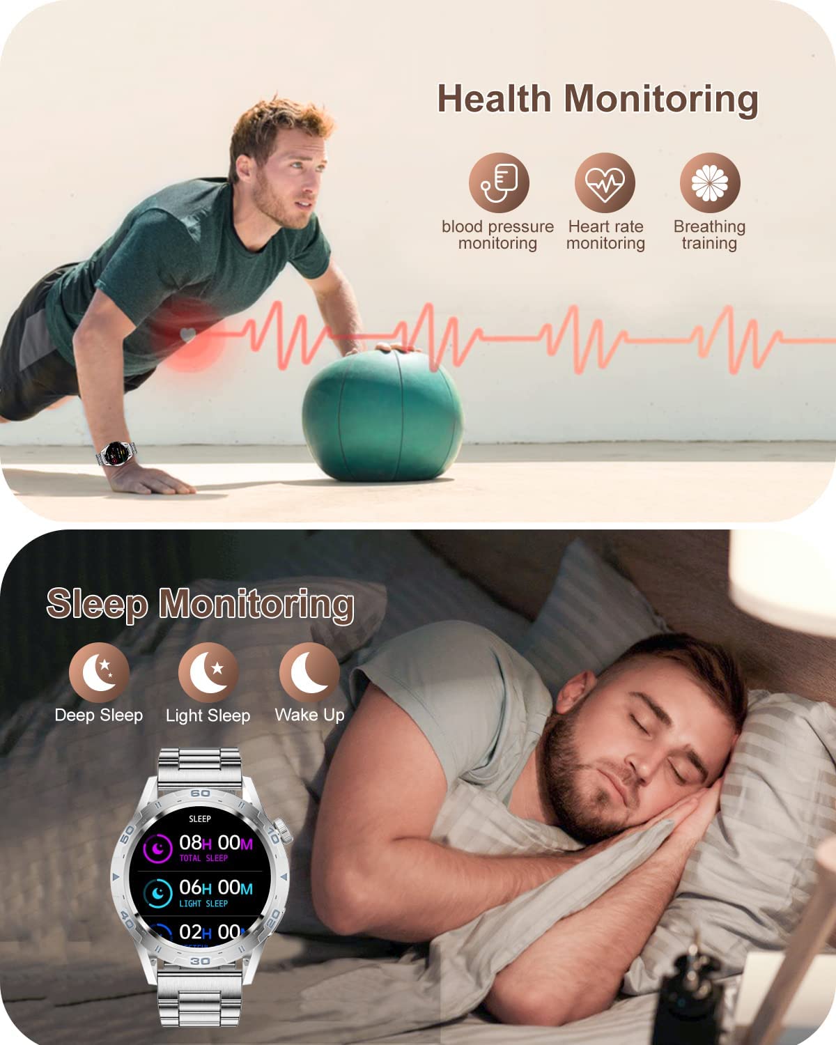 • 【Heart Rate Sleep Monitoring】This men's smartwatch is equipped with a powerful optical motion sensor that automatically monitors your heart rate in real time to provide you with comprehensive health protection. This smartwatch for men also supports sleep monitoring to help you better understand your health status and adjust your lifestyle appropriately. Note: All data is for reference only and not for medical use.