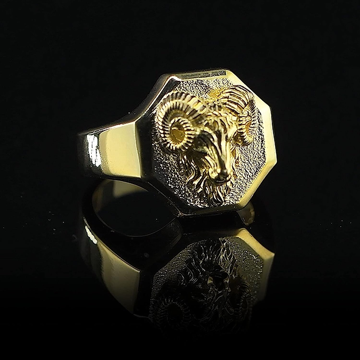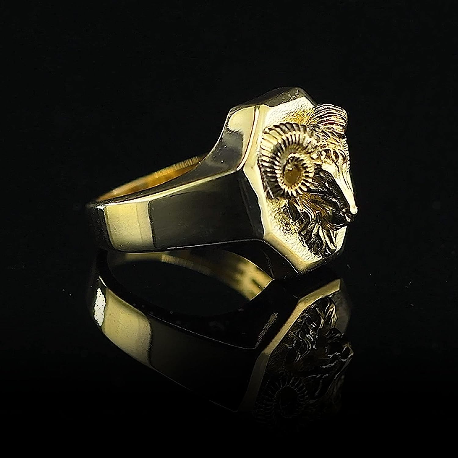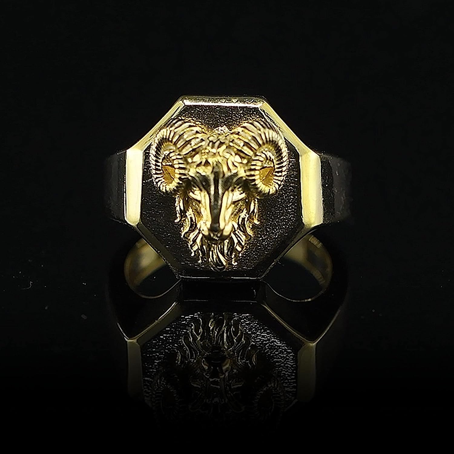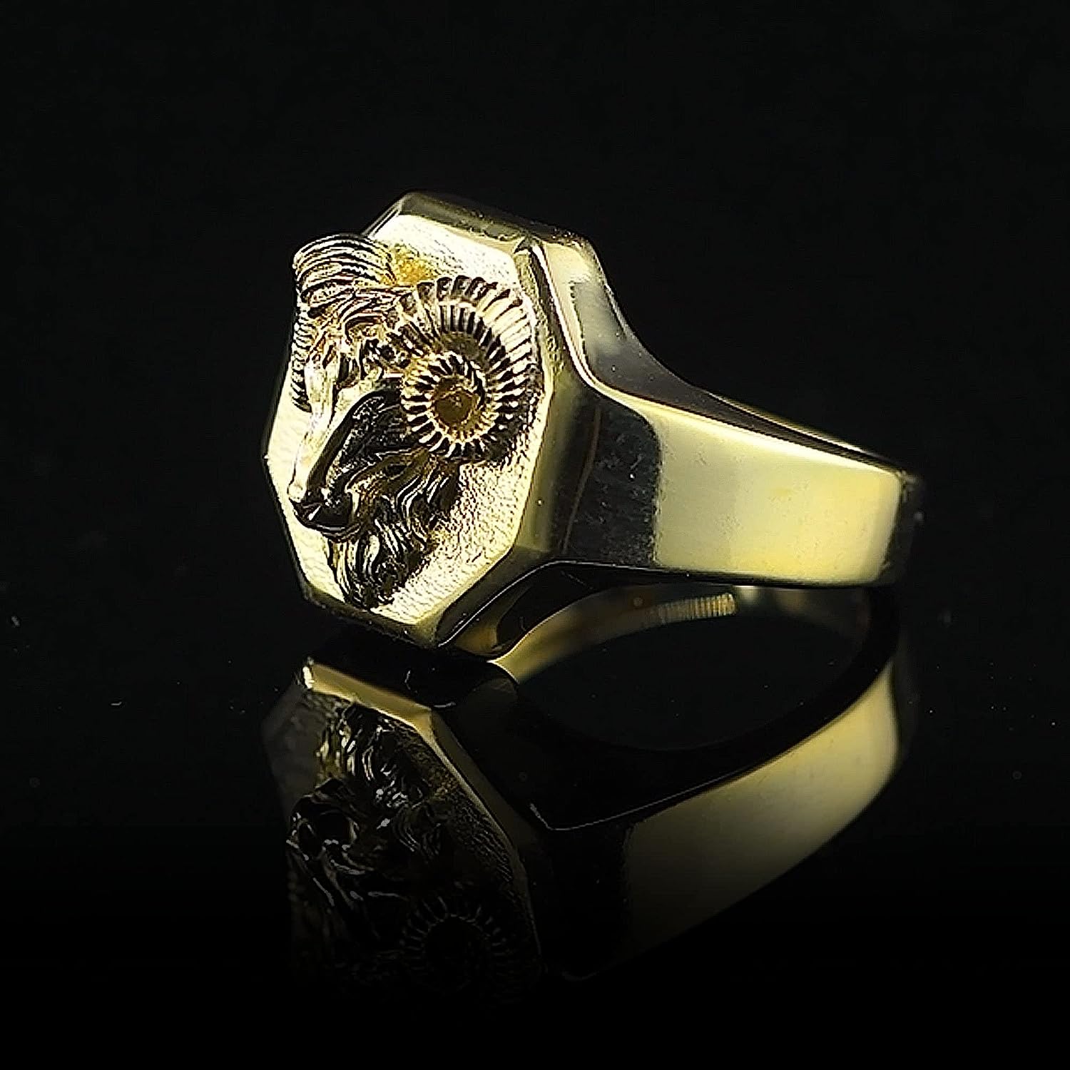 10K Gold Aries Ram Zodiac Signet Ring | 14K GOLD Animal Goat Handmade Solid Band Ring | 18K Gold Custom Jewelry Men Women Unique Gift
