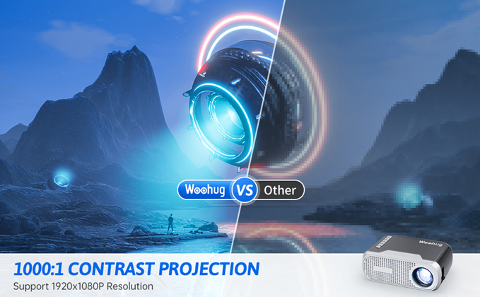 • Super Movie Projector Experience : The video projector upgraded in 2023, support full HD 1920x1080p highest resolution. 1000:1 contrast ratio, A real, dynamic and color vibrant HD projection image quality. It enables excellent playback of films, videos, games, photos, parties, and T-V programs and can be set up at your will.