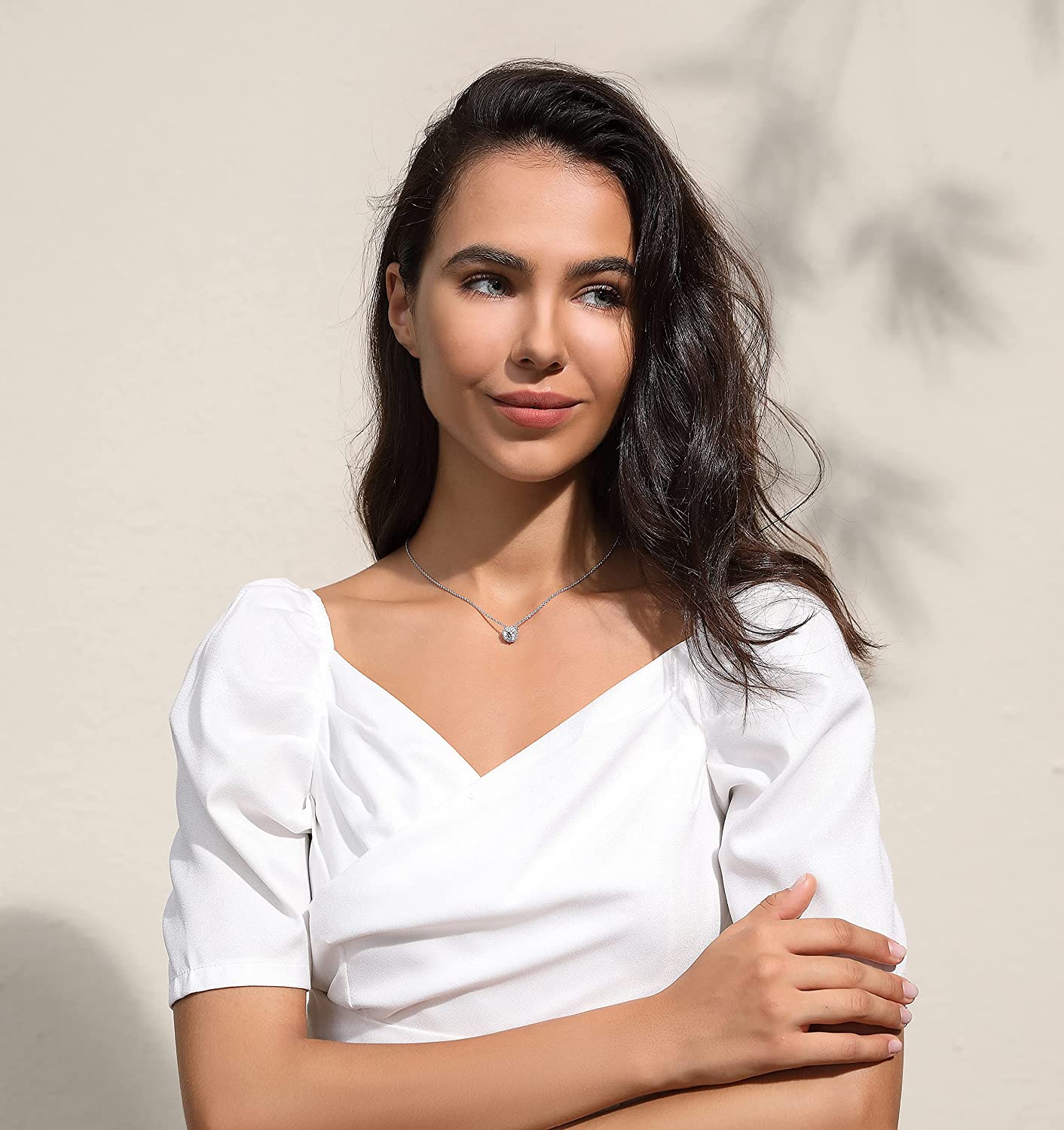 • ✧ 925 STERLING SILVER NECKLACE for WOMEN ✧ The pendant and chain of our necklaces are made of 925 sterling silver that is hypoallergenic,anti-oxidant, won't fade, rust or tarnish. Lead free, nickel free, and allergy free. Pendant Size: 0.4"*0.22". Center Stone Size:0.27". Chain Length:18"+2" extension chain. The pendant necklace comes with an elegant gift box,it's a wonderful gift for her.
