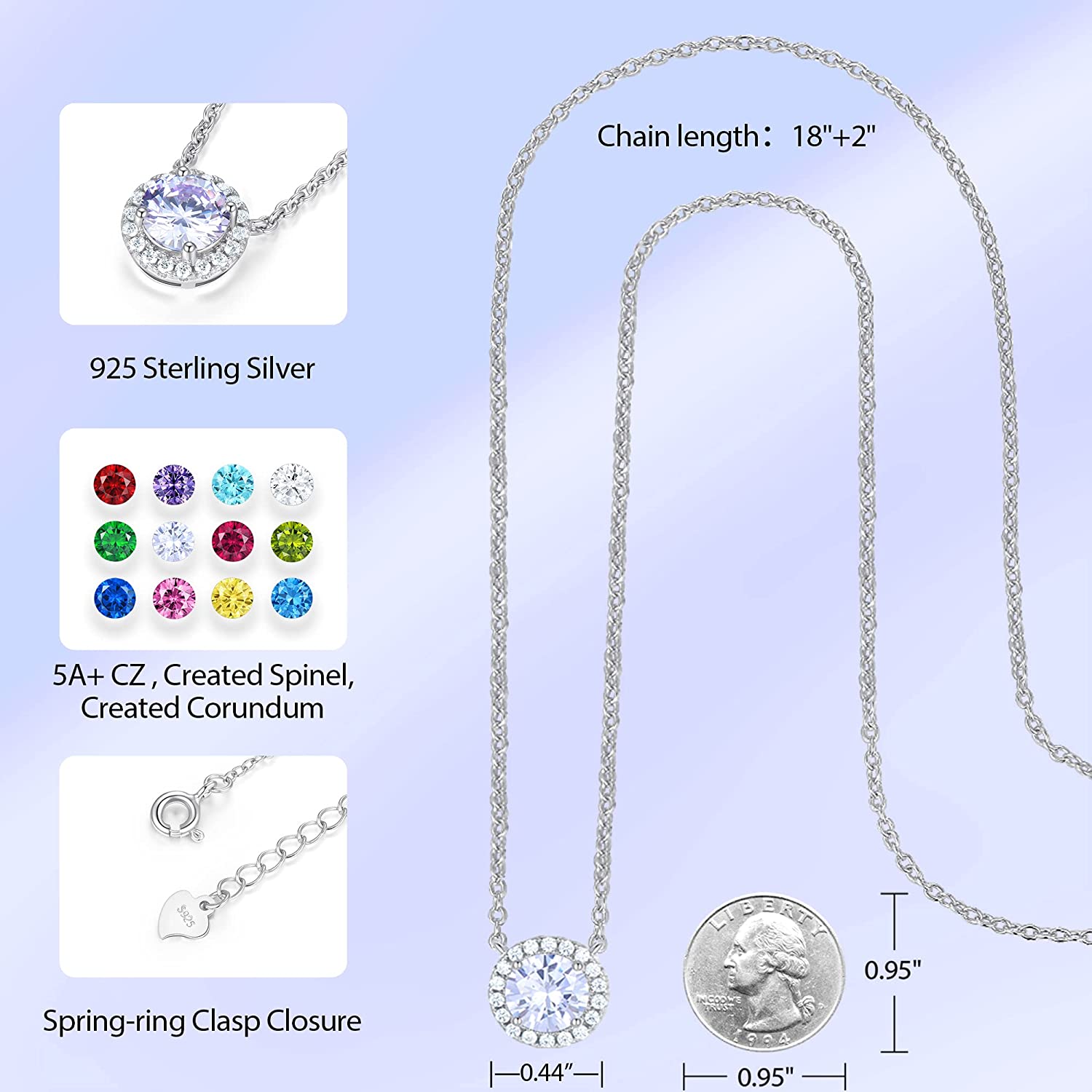 Gloffery 925 Sterling Silver Birthstone Round Solitaire Pendant Dainty Halo Necklaces for Women, Anniversary Valentine's Day Birthday Mother's Jewelry Gifts for Girls Women Wife Mom Girlfriend