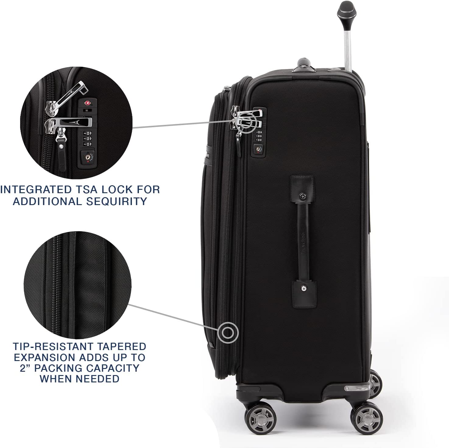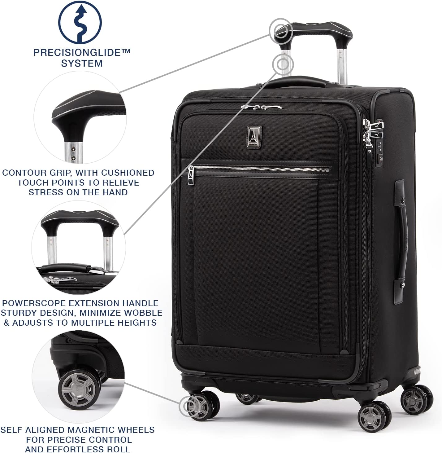 Travelpro Platinum Elite Softside Expandable Luggage, 8 Wheel Spinner Suitcase, TSA Lock, Men and Women, Shadow Black, Checked-Medium 25-Inch
