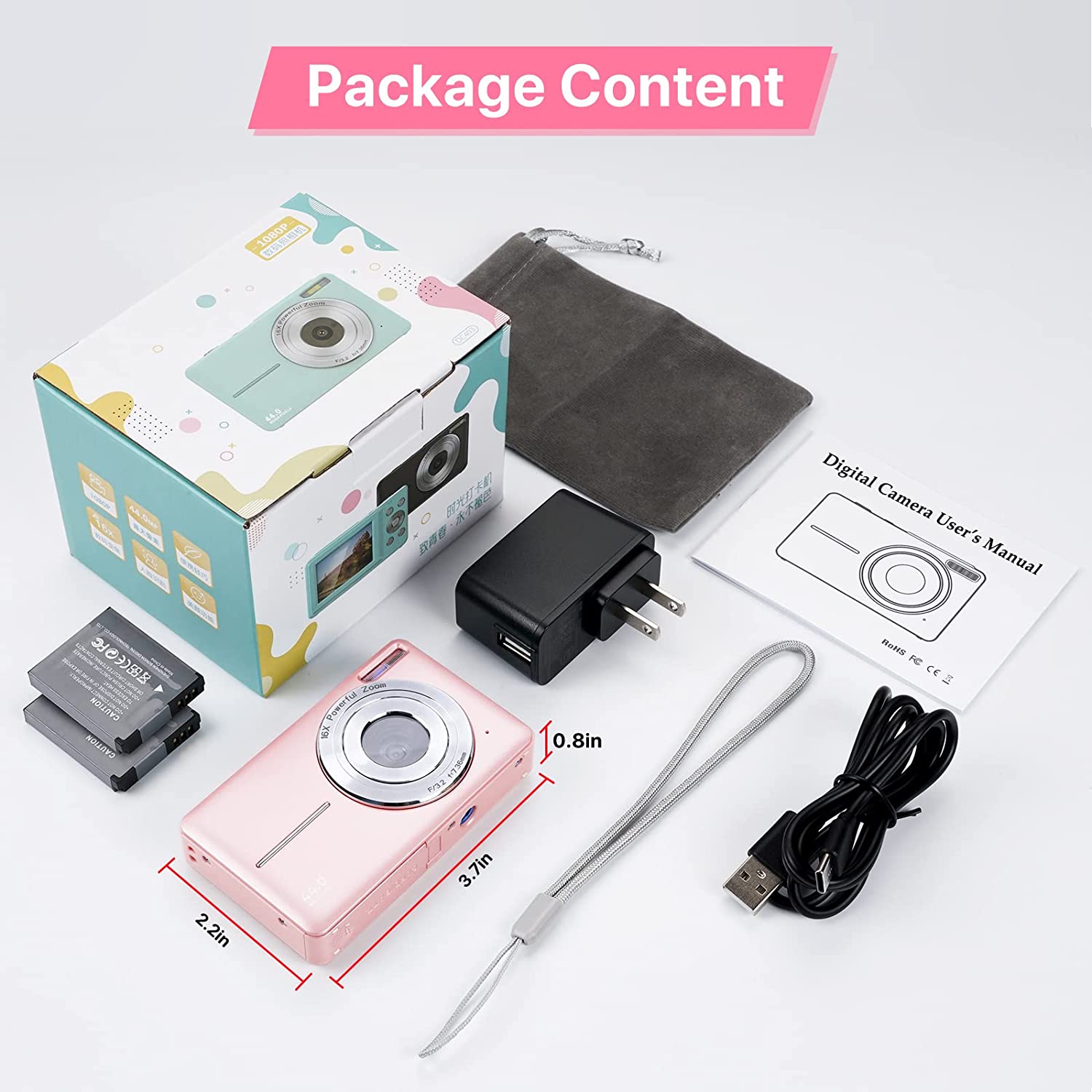 - [Multifunctional Digital Camera] Featured with fill light,anti-shaking,continuous shooting,face detection,smile capture,self-timer,internal microphone and speaker(record sound videos). This portable camera will allows you to capture the most exciting and memorable moments with high quality photos or videos. Totally fits your demand, have fun and record wonderful times with friends, family members and classmates.