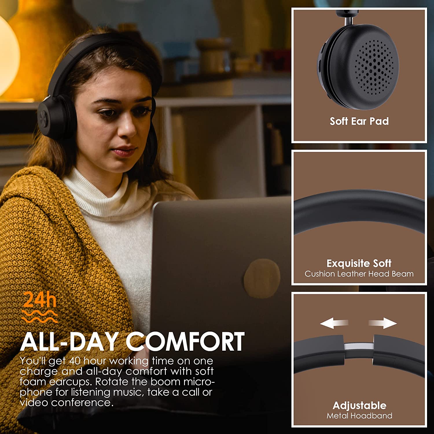 【Stable Connectivity & Wide Compatibility】Our on-ear headphones uses QCC3040 Bluetooth chip and the Bluetooth version is 5.1, which can offer stable and quick connection with Bluetooth devices. The aptX HD technology can provide great audio quality. Low Latency ensures your Bluetooth device can transmit real-time audio.If your computer has no Bluetooth function, you can use the Bluetooth dongle included. It is compatible with Skype, Zoom, MS teams, Google Meet and most popular software. NOTE: The MFB button can't support to answer or reject calls when use with computer.