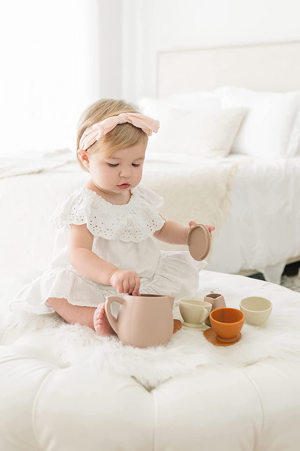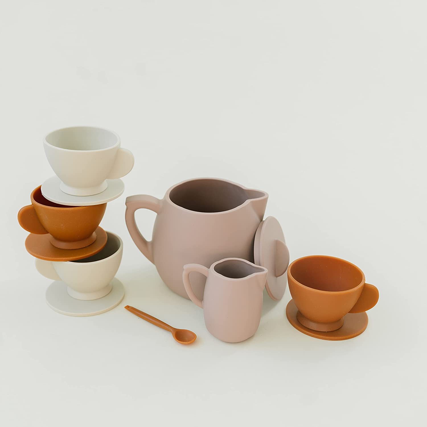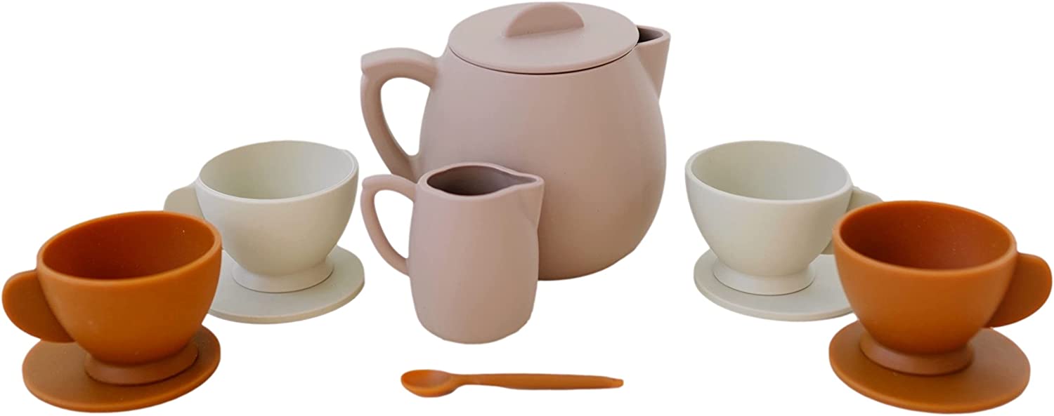 Marlowe & Co Silicone Classic Tea Play Set for Children (Botanical Rose)