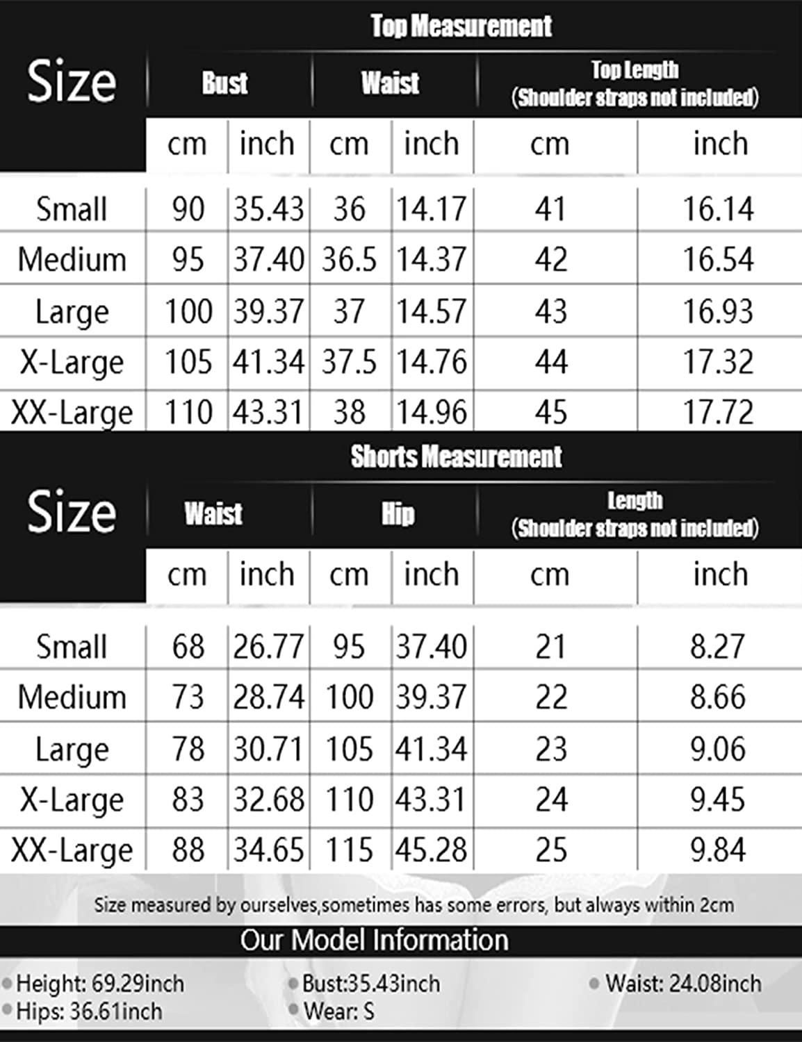【Note】——Our size are standard US size, please refer to our own SIZE CHART in the description below to help you choose the most appropriate size. If you have any problems, you can contact us anytime. We will try our best to make you satisfied.Our model height is 173cm (5'8'') , bust is 83cm (33.07''), waist is 60cm (23.62''), hip is 94cm (37.01''), wears small size.