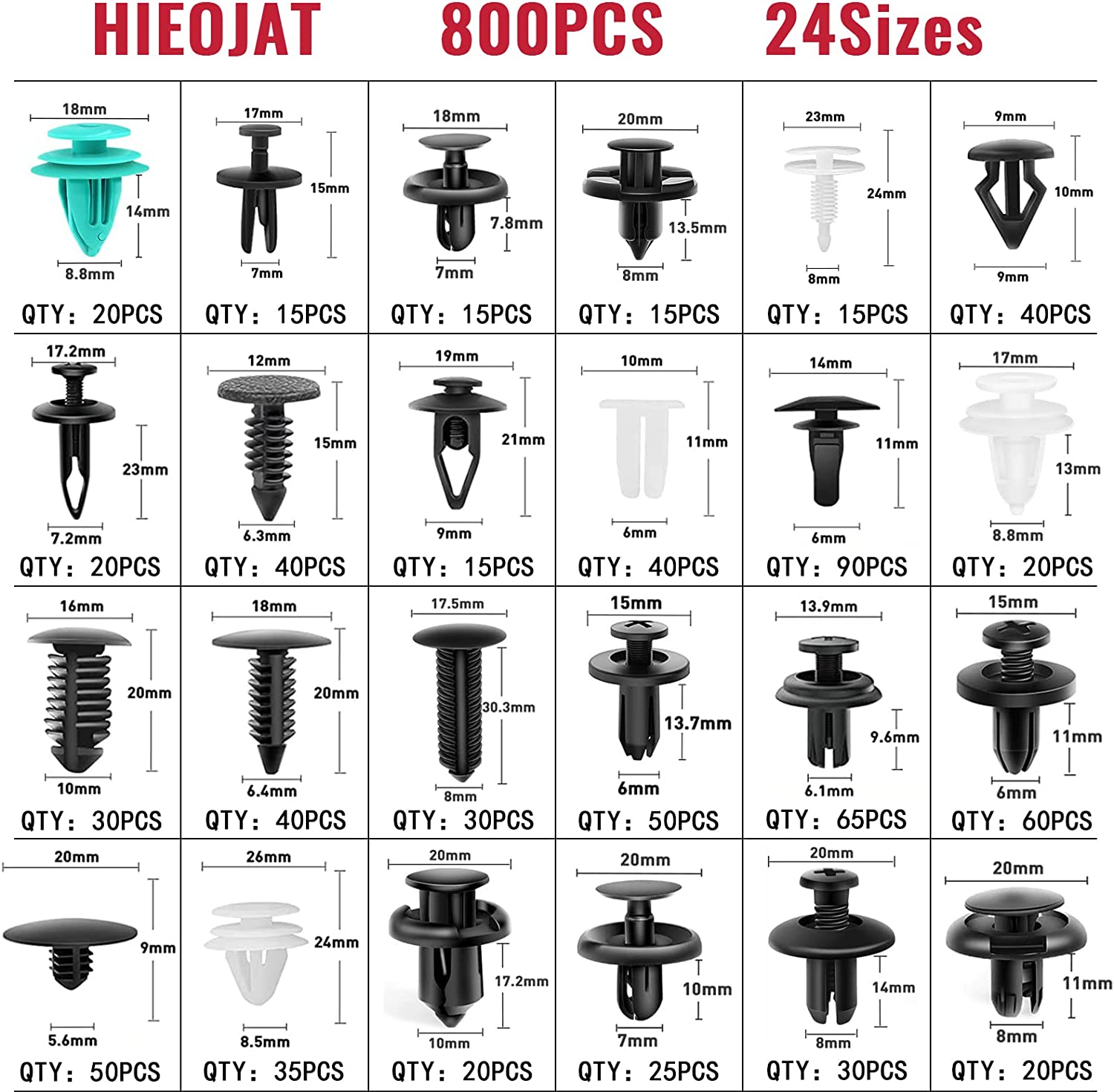 【910pcs car retainer push clips kit】 -Quantity: 910pcs/pack. Multi kinds of common size Suitable for for the trim panel clips, door trim clips, door panel clips,bumper clips,Fender clips,engine cover and splash shield retainers replacement.